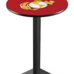 Bring a touch of style and functionality to your bar, game room, or man cave with this premium 36-inch pub table. Featuring a bold red and yellow design, this table offers a vibrant full-color laminate top that is scratch-resistant and easy to clean. Its durable square base with a black wrinkle powder-coated finish provides exceptional stability and a sleek appearance. Designed for both durability and convenience, this pub table is perfect for showcasing your loyalty while enjoying a practical and stylish addition to your space.
