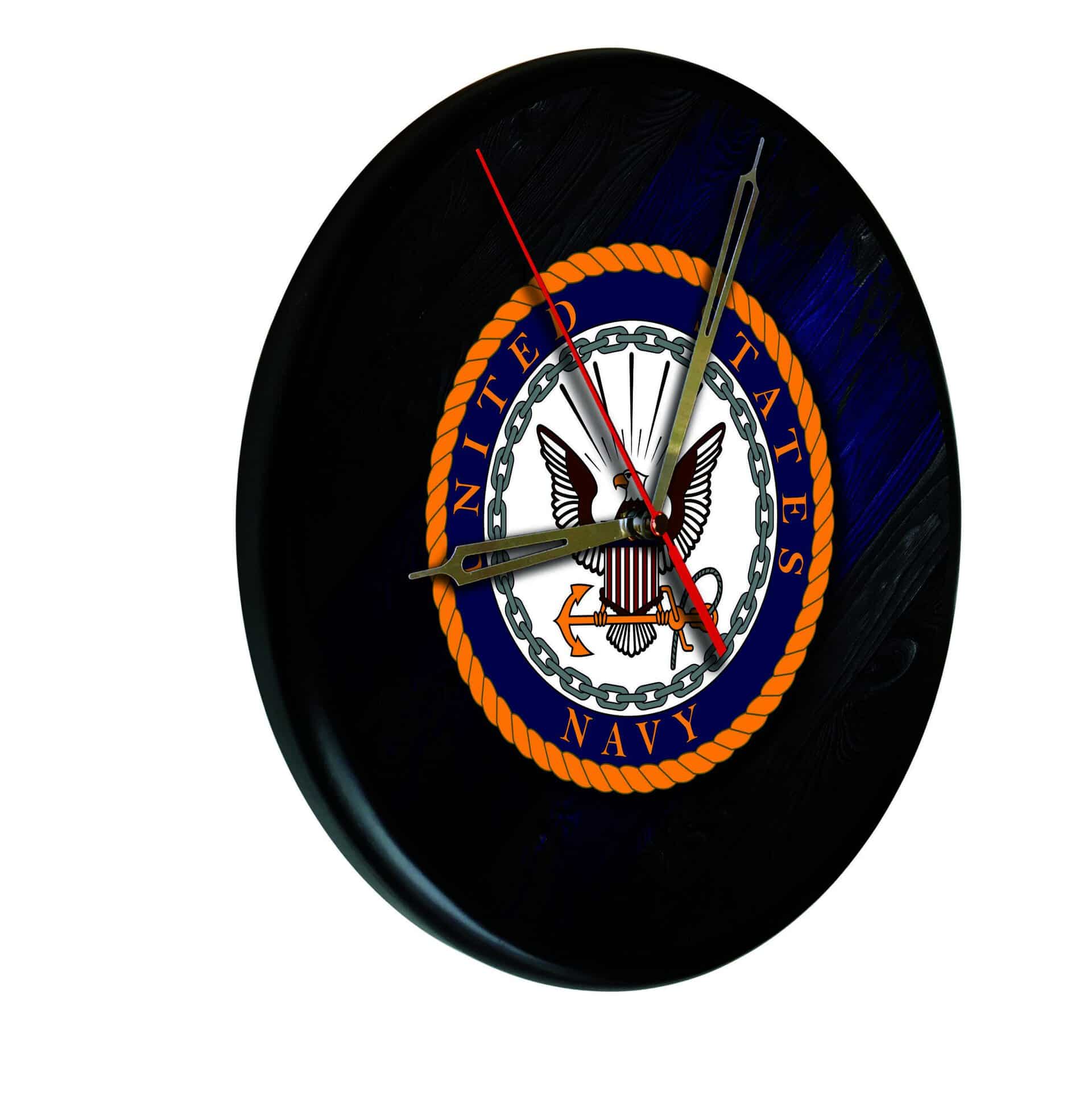 The United States Navy 13-Inch Solid Wood Clock in Black is a stylish tribute to those who have served. Featuring a 13-inch diameter, this clock combines functionality with a striking design, making it an ideal addition to any man cave or office. The clock’s first surface, digitally printed graphics utilize UV inks, ensuring that the vibrant colors will not fade over time. With accurate quartz movement powered by a single AA battery, this clock guarantees precise timekeeping. Its recessed keyhole hanger allows for a sleek installation that sits flush against the wall, enhancing any decor.