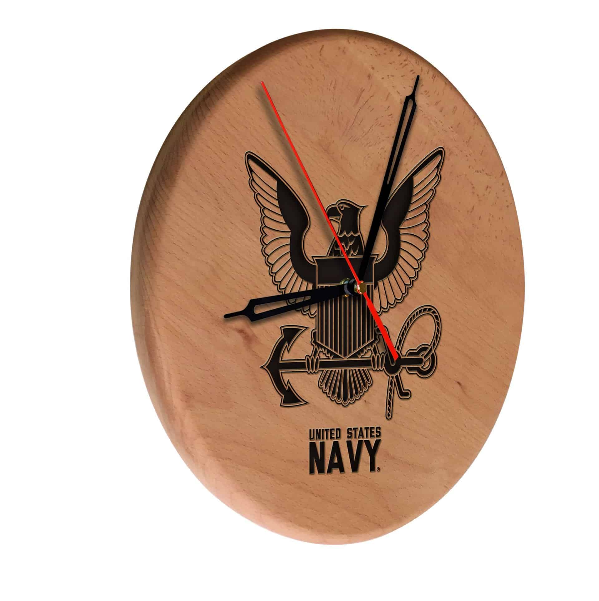 This 13-Inch Solid Wood Engraved Clock is a stunning tribute to the United States Navy, designed to honor those who have served. Featuring officially licensed, laser-engraved graphics, this clock not only serves a functional purpose but also enhances your space with its elegant design. The accurate quartz movement powered by a single AA battery ensures you’ll always be on time, while the recessed keyhole hanger provides a seamless look against your wall. Perfect as a gift or for personal use, this clock is a proud symbol of appreciation and respect.