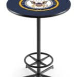 Show your support for our troops with this elegant 42-inch pub table, perfect for any bar, game room, or man cave. This high-quality table features a durable, sublimated full-color laminate top that resists scratches and ensures vibrant, long-lasting design. The sturdy star base is crafted from plating-grade steel, powder-coated with a sleek black wrinkle finish for enhanced durability. Easy to assemble and equipped with adjustable floor glides, this table guarantees stability even on uneven surfaces.