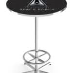 Enhance your bar, game room, or man cave with this stylish and durable 42-inch pub table. Designed for both aesthetics and functionality, this table features a vibrant, full-color sublimated laminate top that is scratch-resistant and easy to clean. Its sturdy star base, crafted from plating-grade steel, ensures exceptional stability and durability, even in high-traffic environments. The triple chrome-plated finish adds a sleek and polished look that will last for years. Adjustable floor glides provide stability on uneven surfaces, and assembly is quick and hassle-free. Perfect for entertaining guests or showcasing your appreciation for our troops, this table combines quality construction with eye-catching design.