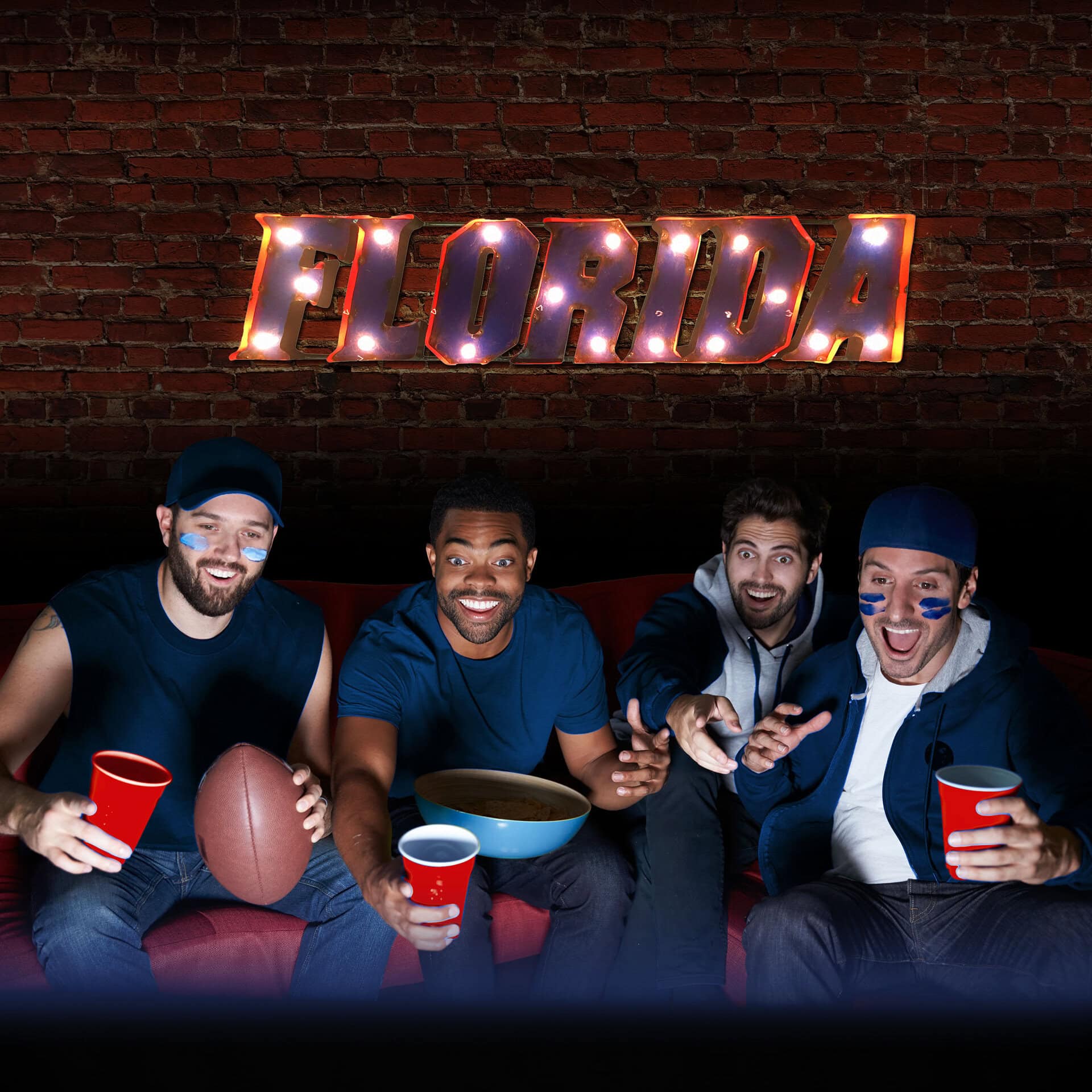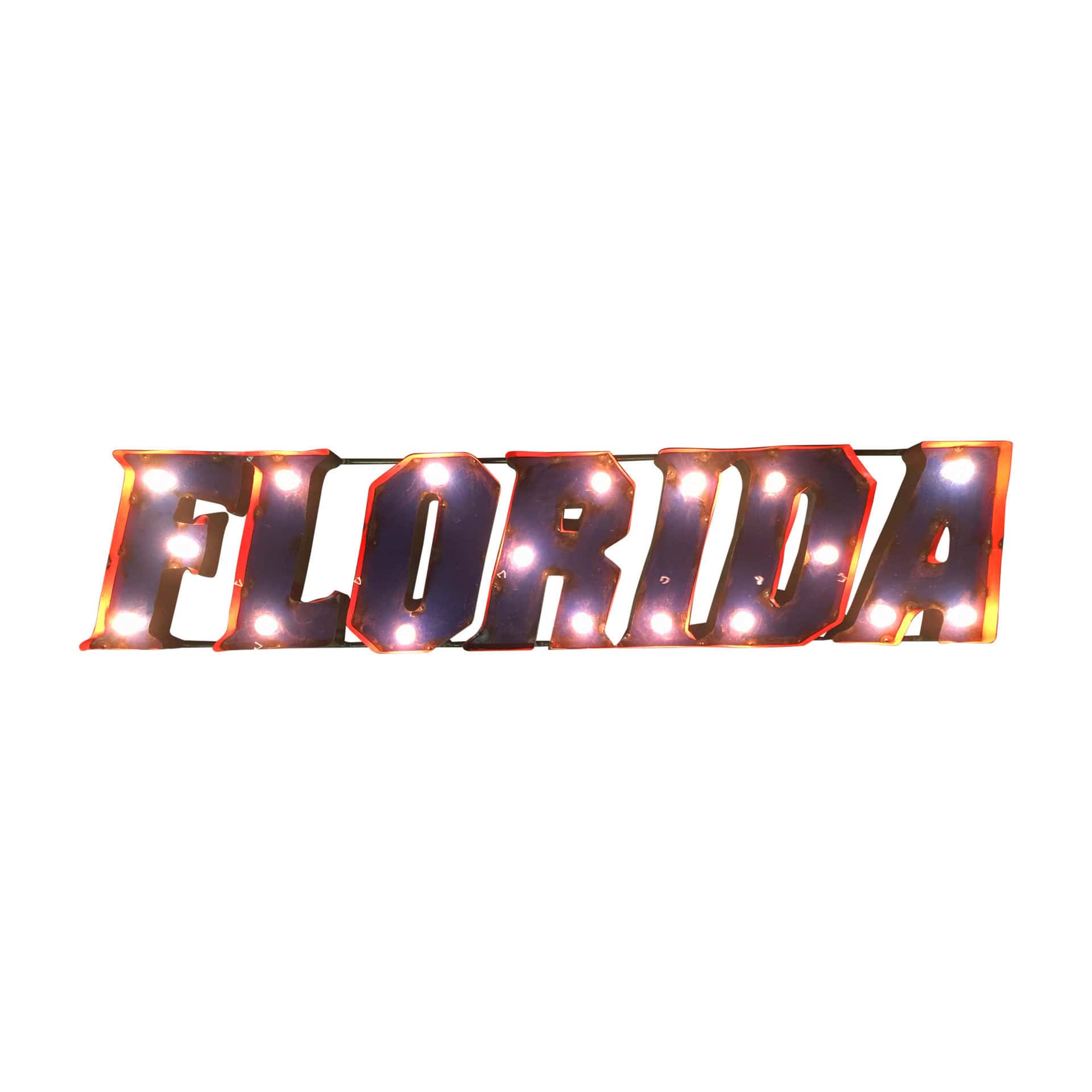 Show your Gator pride with the University of Florida “Florida” Lighted Recycled Metal Sign! This unique piece adds a touch of authentic style to any space, whether it’s your home, fan cave, or even outdoors. Hand-built from recycled metals, this sign features channel lettering and intentionally exposed weld spots for a cool, retro vibe. Light it up and let everyone know where your allegiance lies!