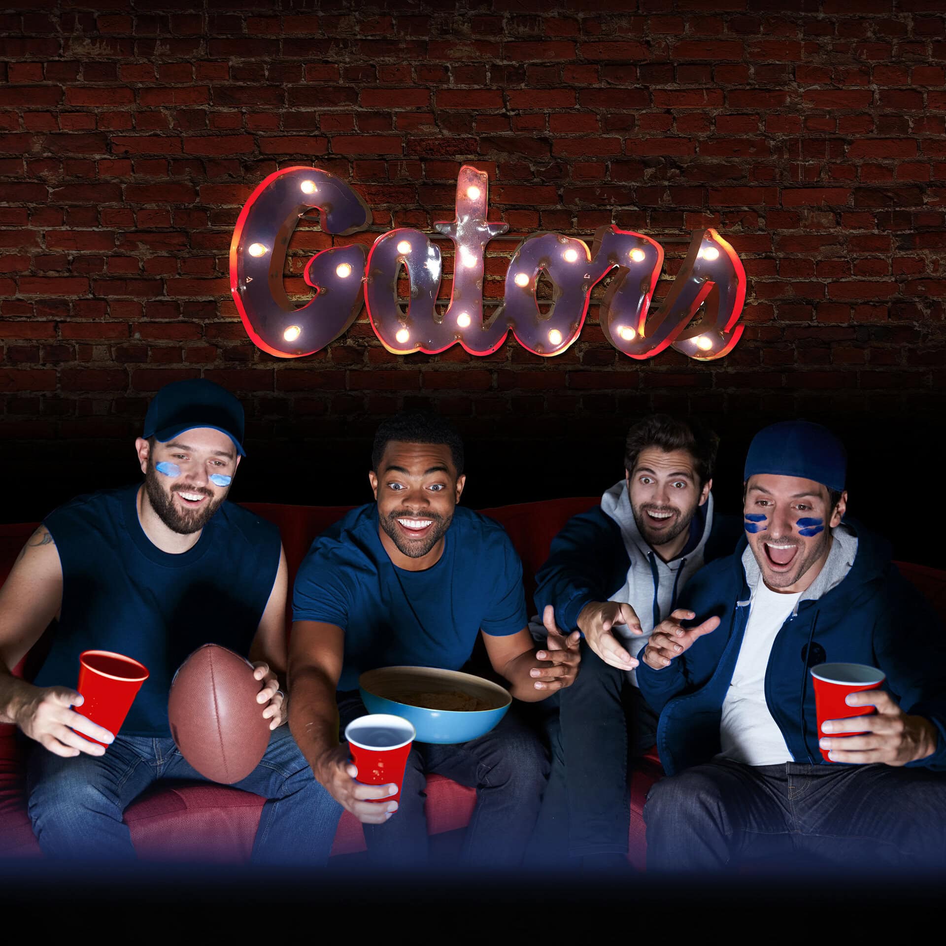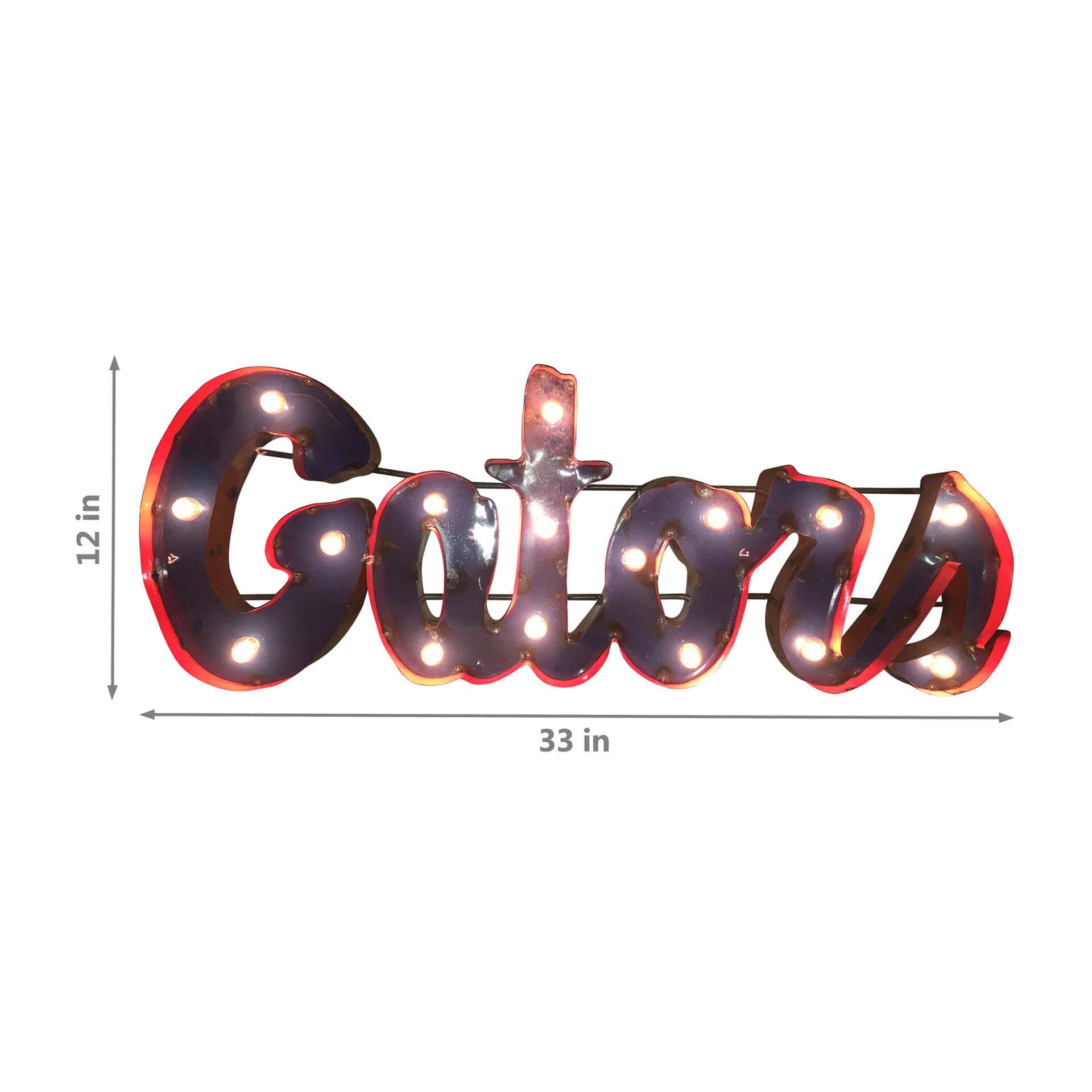 Brighten up your fan cave with the University of Florida “Gators” Lighted Recycled Metal Sign! This unique piece adds an authentic touch to any space, showcasing your team pride with a retro vibe. Hand-built from recycled metals, this sign features channel lettering and exposed weld spots for a one-of-a-kind look. The included light strands with clear, incandescent bulbs create a warm and inviting atmosphere, perfect for game days or any day you want to show your Gator spirit.
