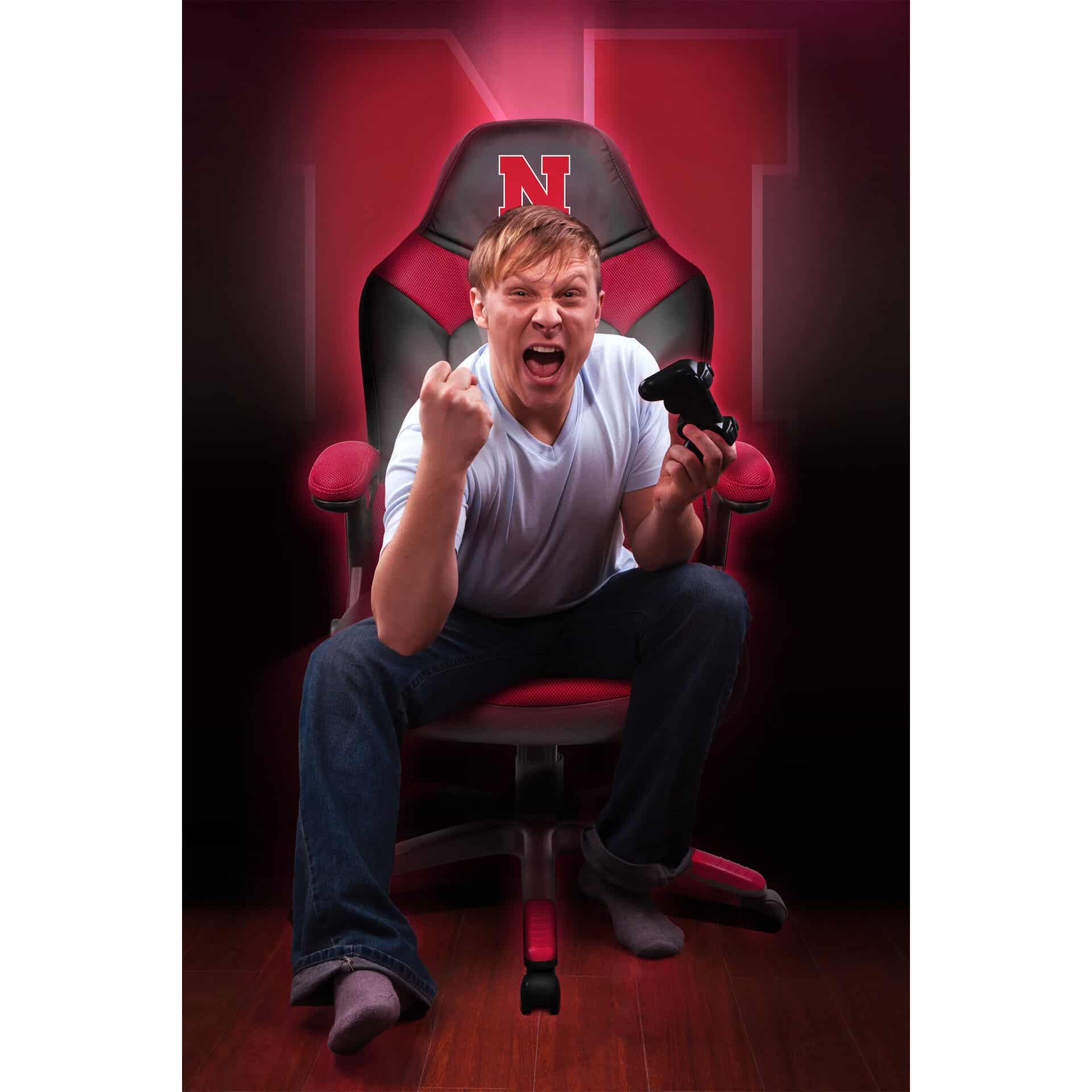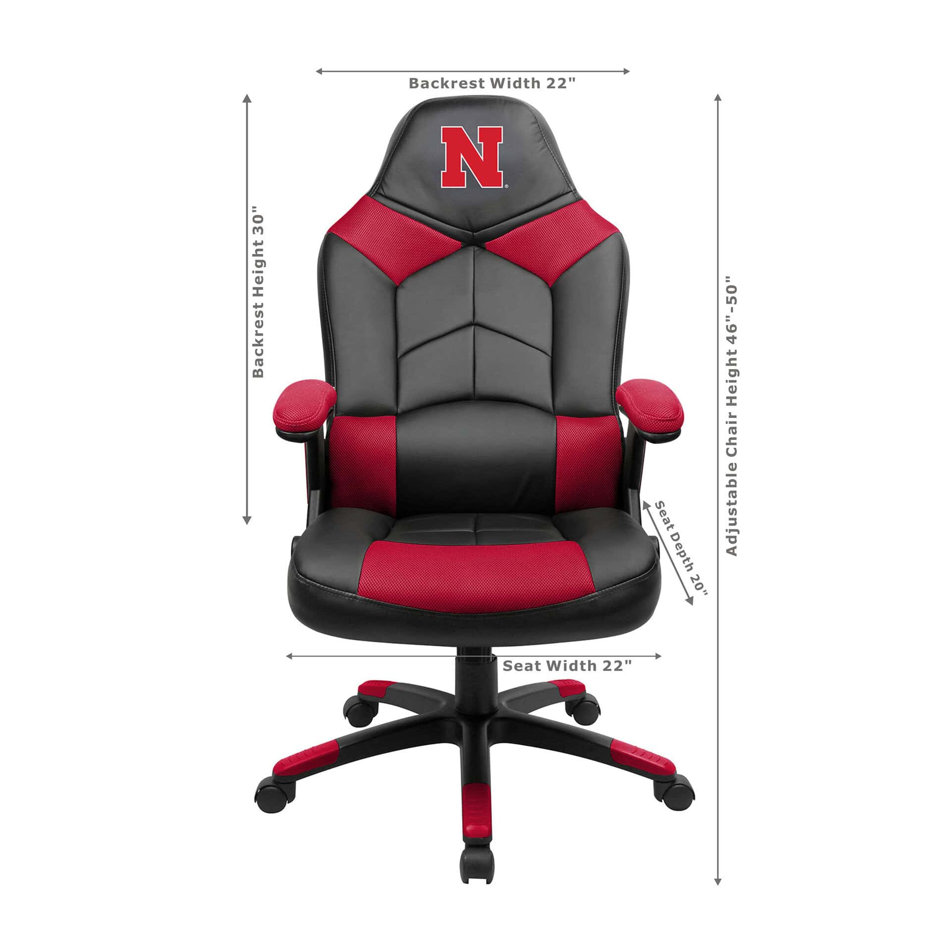 Experience unparalleled comfort and support with the Oversized Gaming Chair. Designed for extended work or gaming sessions, this chair features a generously sized seat and an adjustable back height, ensuring a perfect fit. A unique storage pouch on the back provides convenient storage for your iPad, gaming controller, or headphones. Show off your team pride with the colorful team design and detailed embroidered logos.