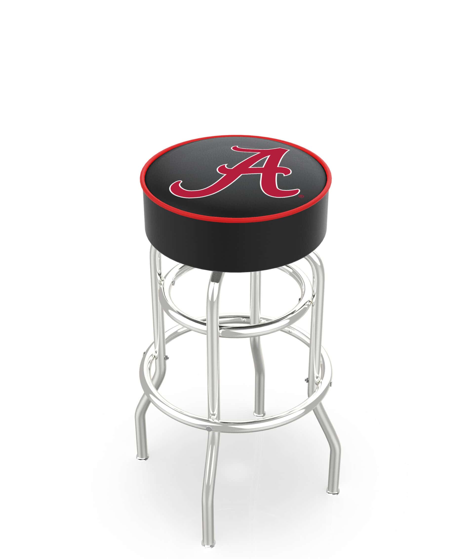 The University of Alabama 30-Inch Swivel Backless Bar Stool with Chrome Finish and Double-Ring Base is the perfect addition to your bar, game room, or man cave. Designed for the ultimate sports fan, this stool combines style, comfort, and durability. Featuring a sharp, crisp logo applied using a state-of-the-art printing process, sturdy commercial-grade steel construction, and a comfortable cushion seat, this stool is both functional and eye-catching. Its triple chrome-plated finish ensures a long-lasting, polished look, while the swivel functionality adds convenience. Elevate your space with this officially licensed, high-quality bar stool.