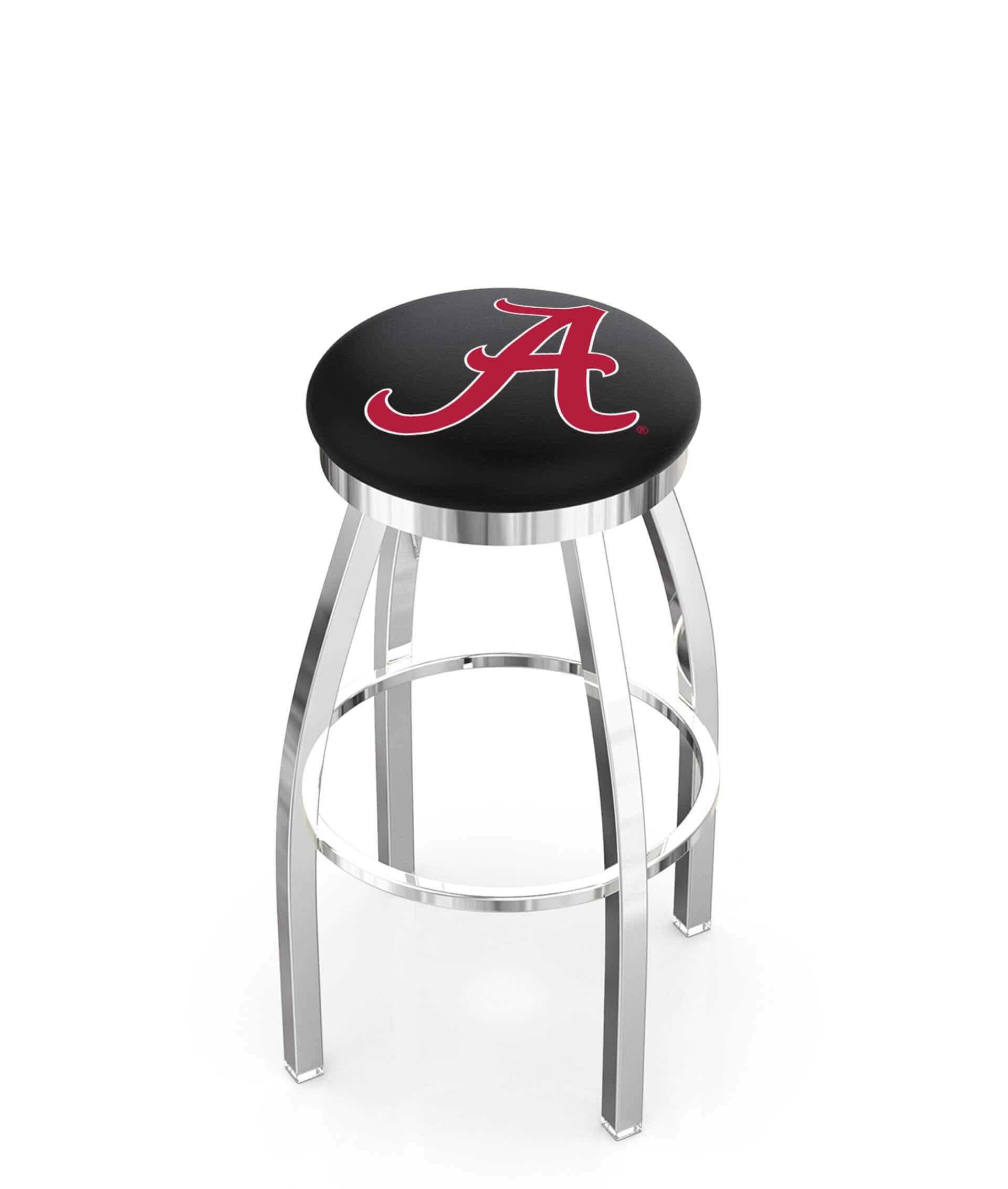 Elevate your bar, game room, or man cave with the University of Alabama 30-Inch Swivel Backless Bar Stool. This officially licensed stool combines sleek design, premium construction, and unparalleled comfort. Its durable chrome finish, backless swivel design, and high-density cushioned seat make it the perfect addition for any sports fan. The stool features a sharp, vibrant logo applied with state-of-the-art UV vinyl ink for a crisp and lasting finish. Built for strength and durability, the stool’s frame is made from commercial-grade steel and triple chrome plated for a long-lasting, polished appearance.
