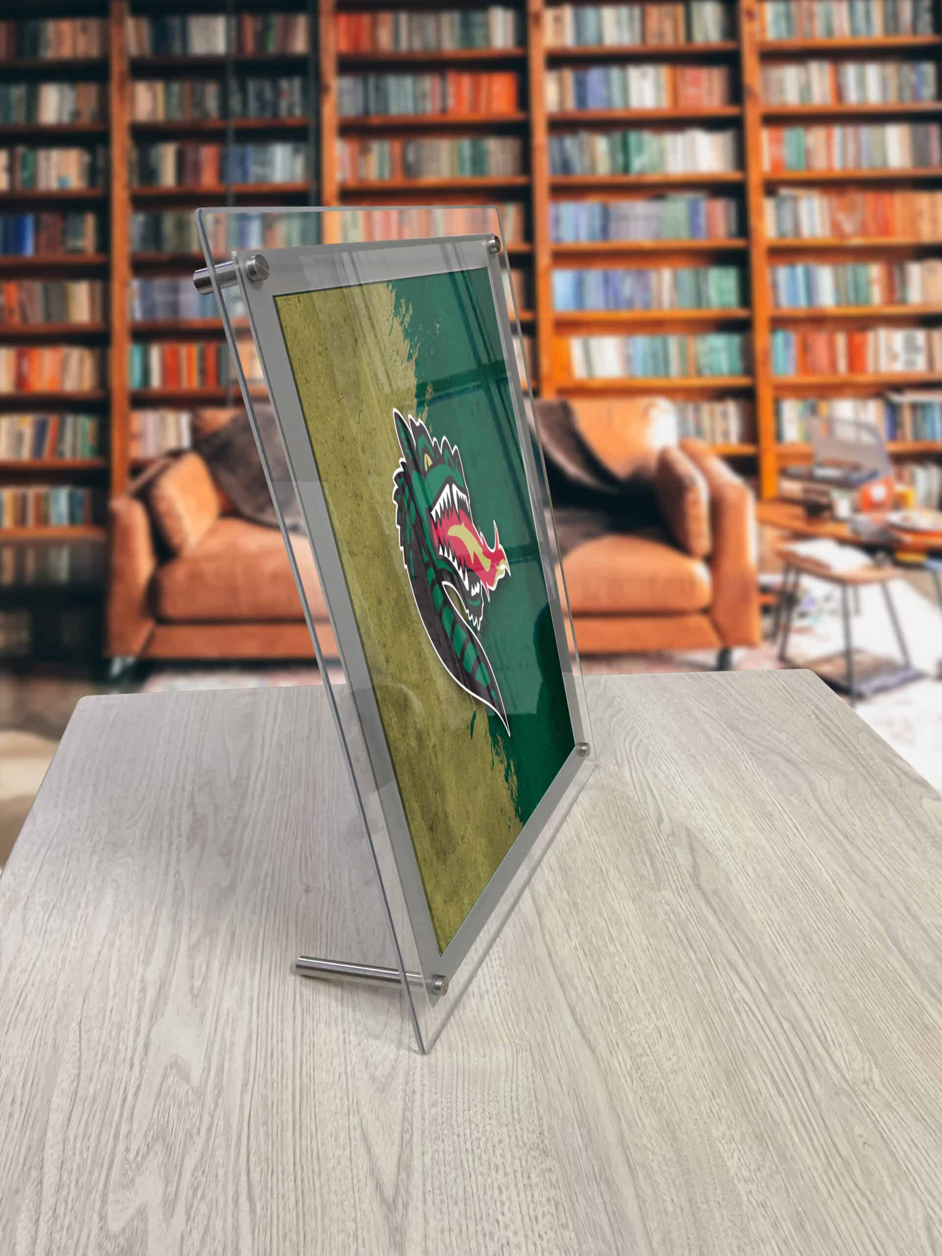 - Mounting Options: Includes hardware for wall mounting (1″ stand-offs) or desktop display (3 3/4″ foot).