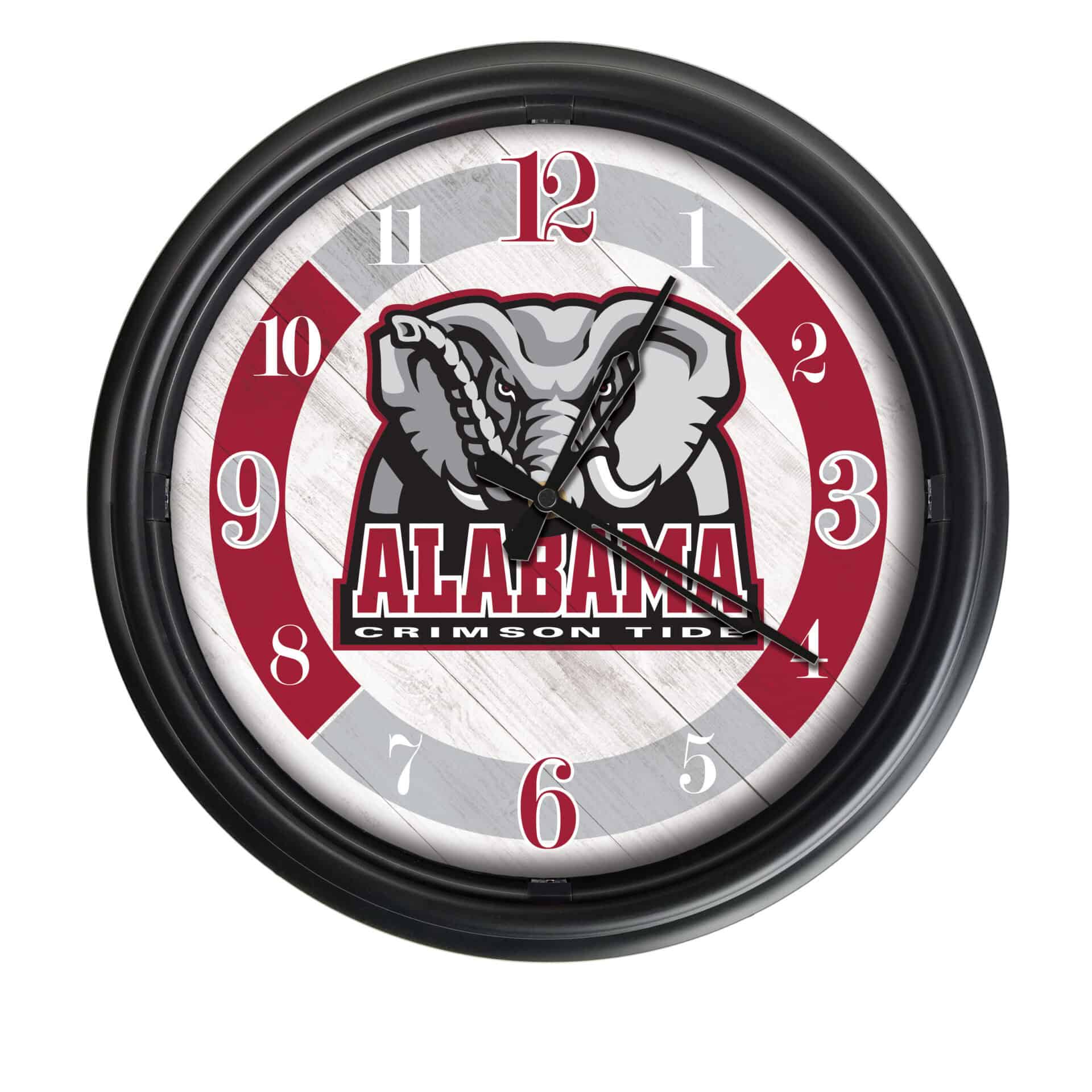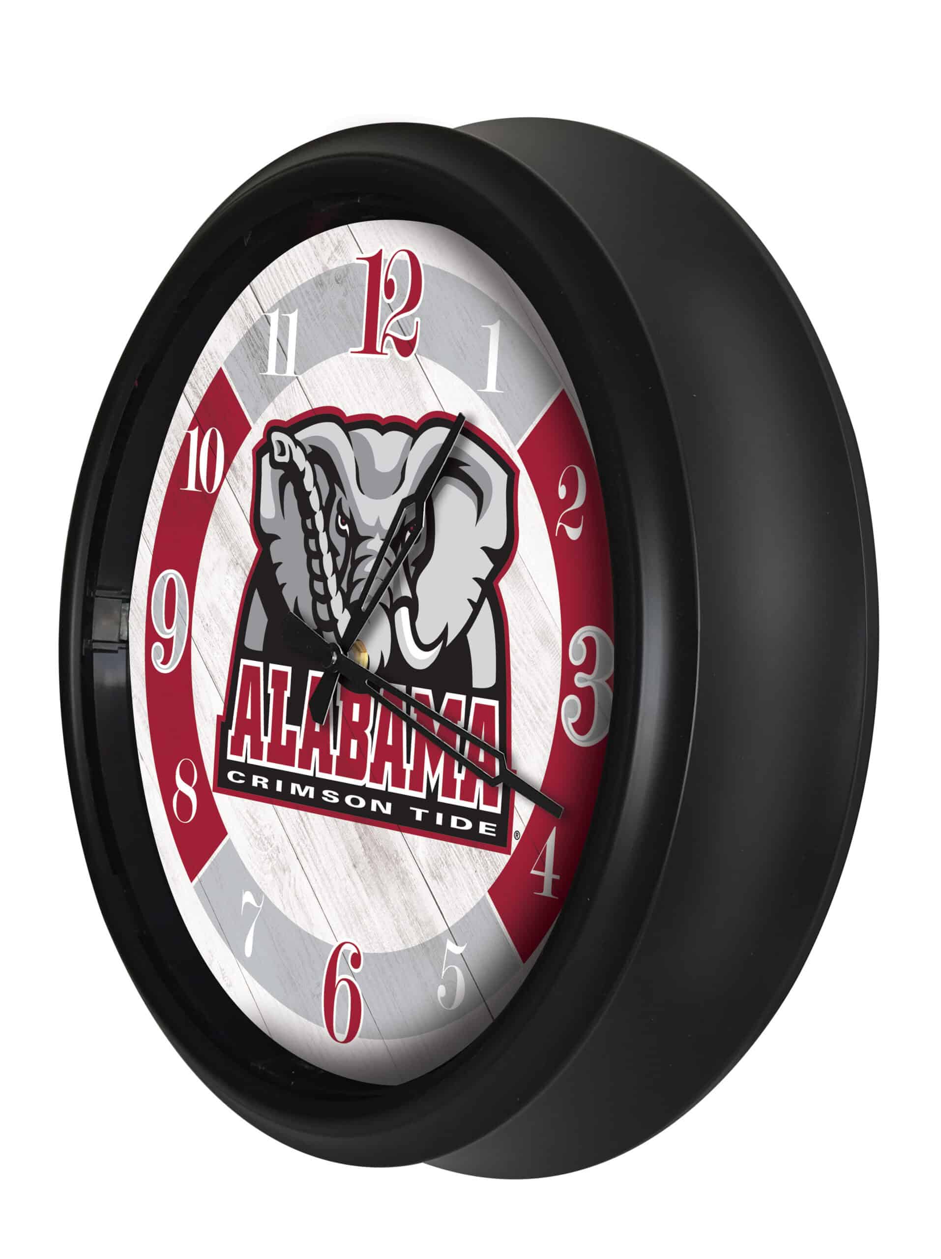 The University of Alabama (Elephant) 14-Inch Indoor/Outdoor LED Wall Clock in Black is the perfect addition to any fan’s space, combining functionality with school pride. This clock features a durable UV-resistant casing and a weather-proof design, making it suitable for both indoor and outdoor use. The vibrant, full-color artwork is digitally printed with UV inks, ensuring long-lasting, fade-free colors. With a photo eye that automatically illuminates the clock face in low light, this clock not only keeps accurate time with quartz movement but also serves as a stylish statement piece.