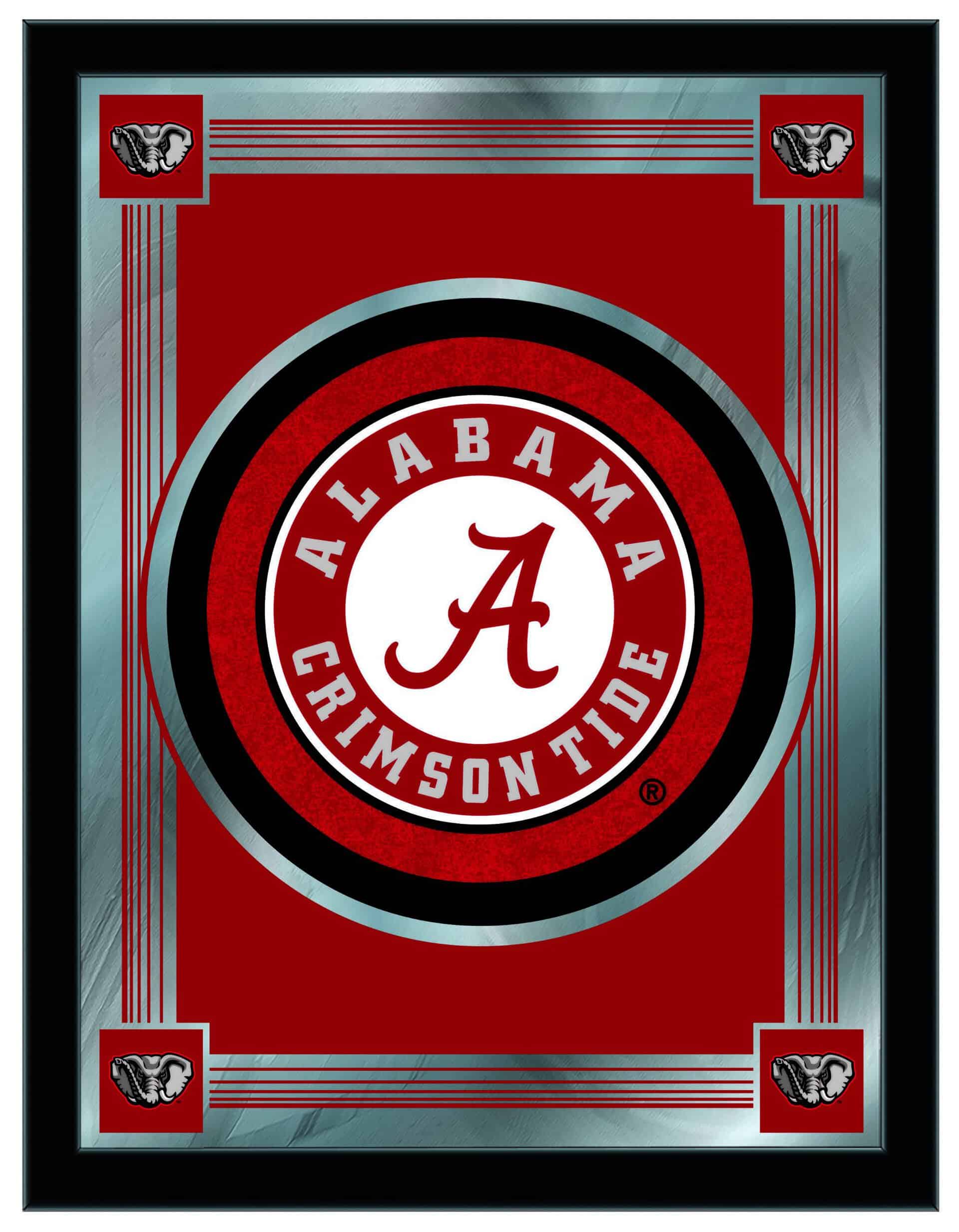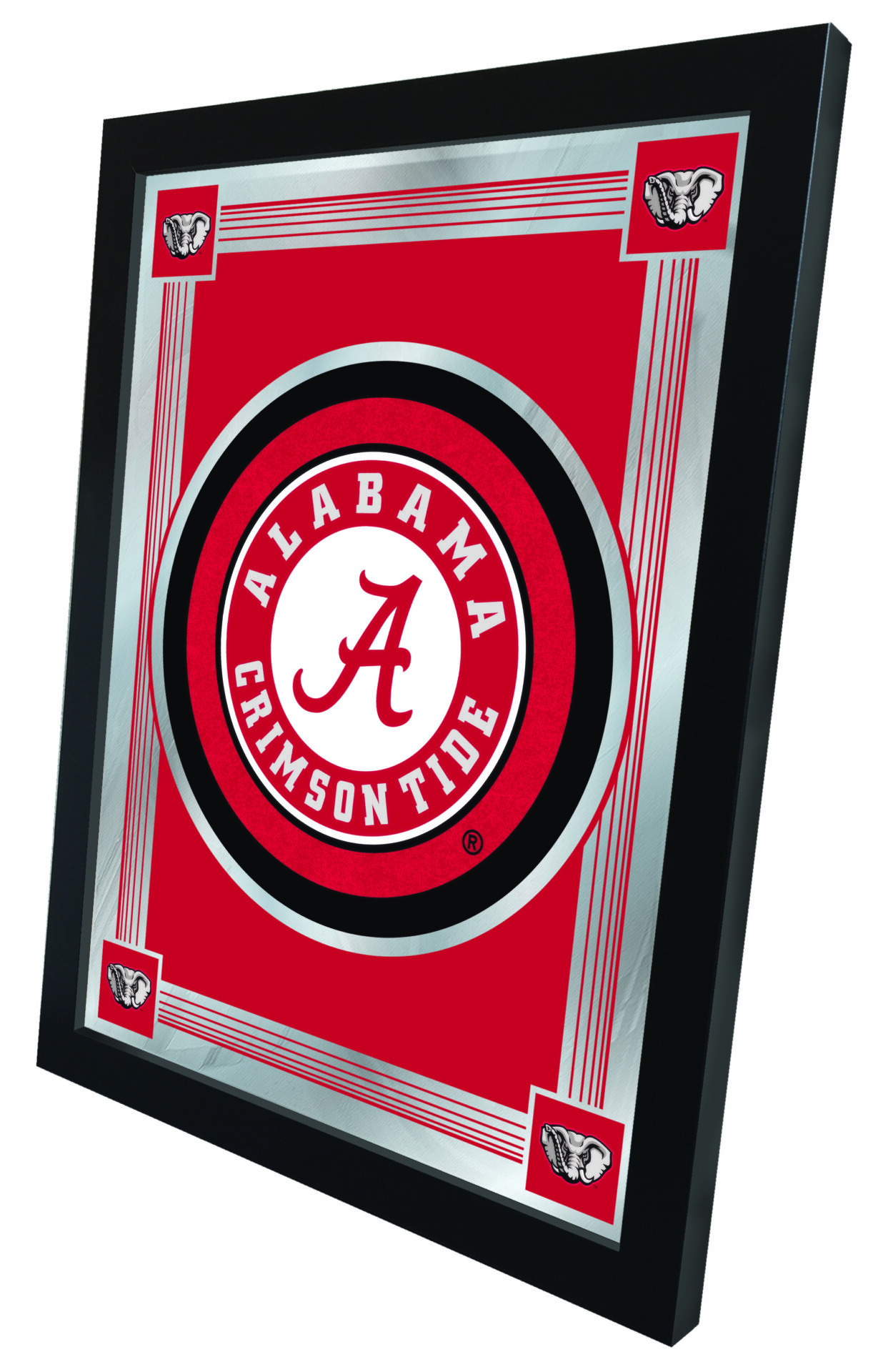 Show your school pride with the University of Alabama (Script A) 17×22 Logo Wall Mirror. This officially licensed logo mirror features a simple yet elegant design, showcasing vibrant colors that burst through the 1/8″ thick glass and are beautifully highlighted by mirrored accents. The mirror is framed with a sleek black, 1 1/4″ wrapped wood frame, complete with saw-tooth hangers for easy installation. Measuring 17 inches wide by 22 inches high, this mirror is perfect for your office, garage, or any room in your home. Whether you’re purchasing it as a gift for a recent graduate or a sports superfan, you can take pride in owning a product that is proudly made in the USA.
