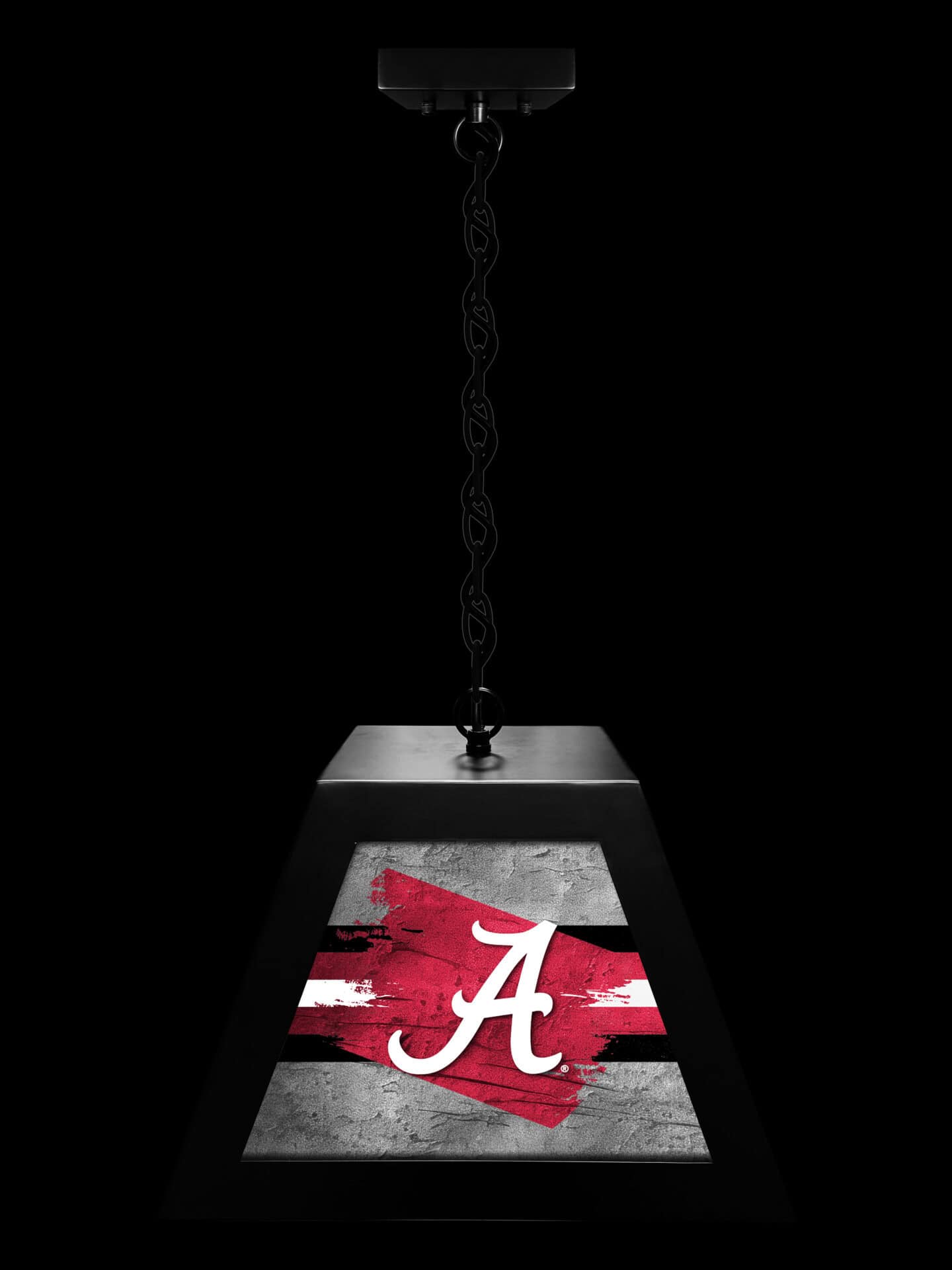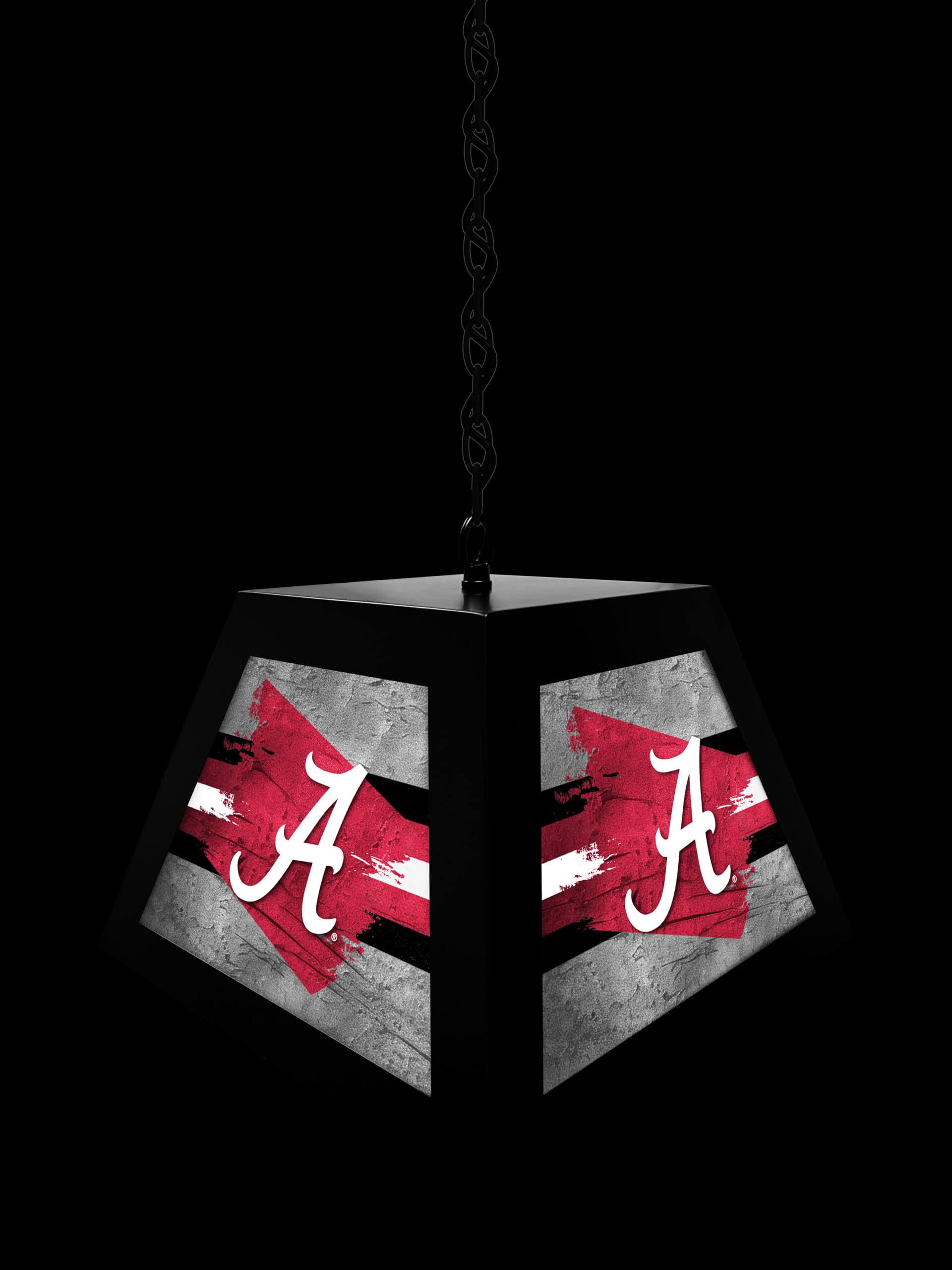 Show off your team pride with the University of Alabama (Script A) Pendant Box Light! This high-quality, suspended light fixture is perfect for illuminating your billiard table, game table, bar, or pub table. It features a durable metal frame, vibrant graphics, and easy installation.