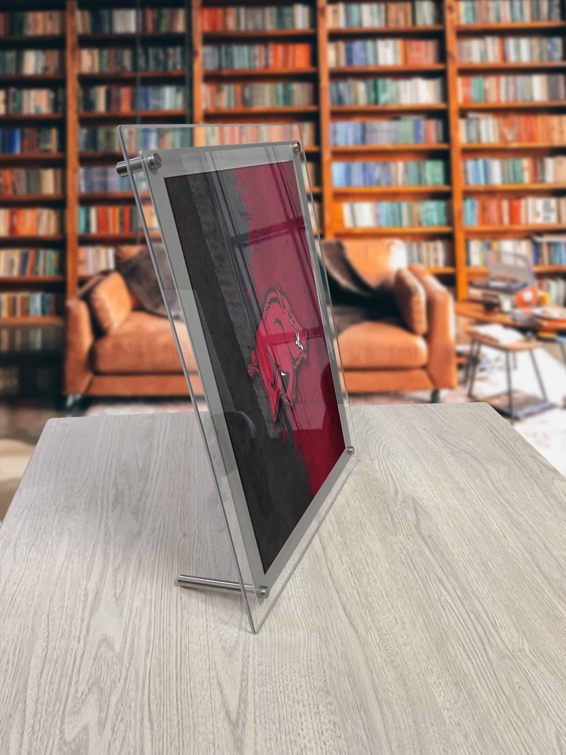 - Mounting Options: Includes hardware for wall mounting (1″ stand-offs) or desktop display (3 3/4″ foot).
