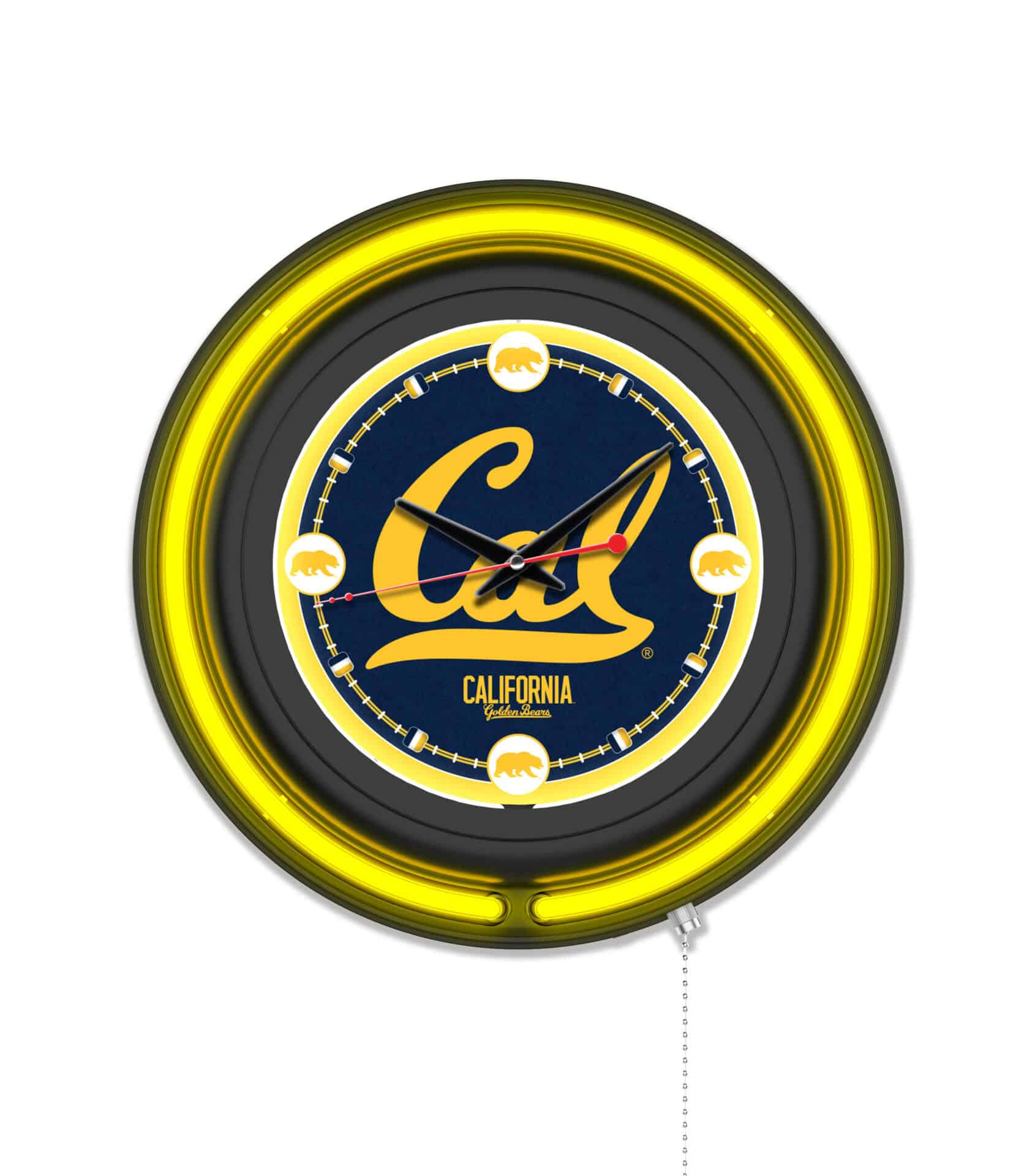 The University of California 15-Inch Neon Logo Clock in Black is the perfect addition to any fan’s man cave, showcasing school pride with its vibrant design. This clock features a sleek black casing and team color-specific neon outer ring that beautifully highlights the custom printed clock face, illuminated by a brilliant white inner neon ring. The neon rings can be easily turned on and off with a convenient pull chain located at the bottom of the clock. Powered by a UL Listed transformer, it operates from a standard 120V outlet, while the accurate quartz movement ensures precise timekeeping, requiring only a single AA battery (not included). Ideal as a gift for graduates, sports enthusiasts, or even for personal enjoyment, this clock combines functionality with a striking aesthetic.