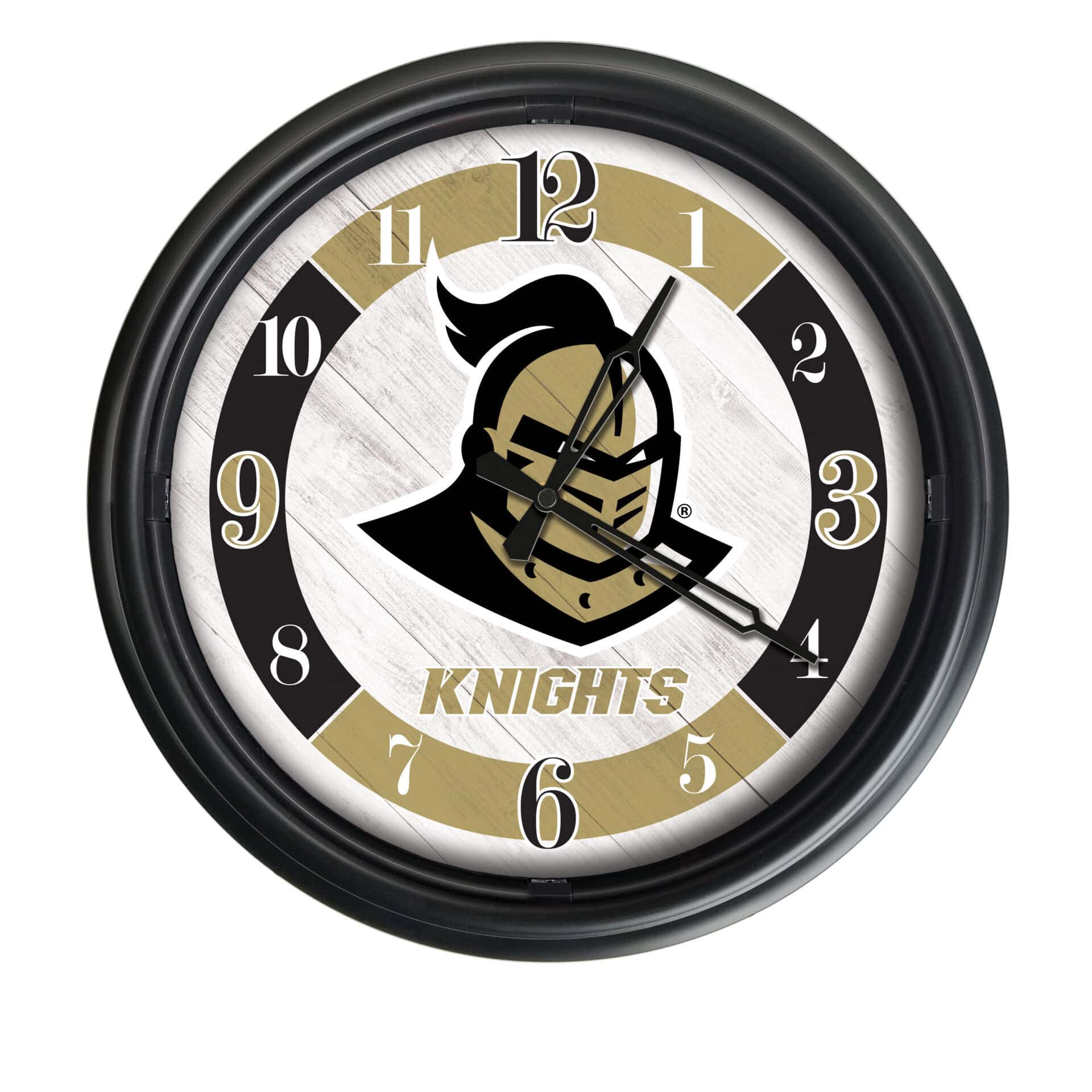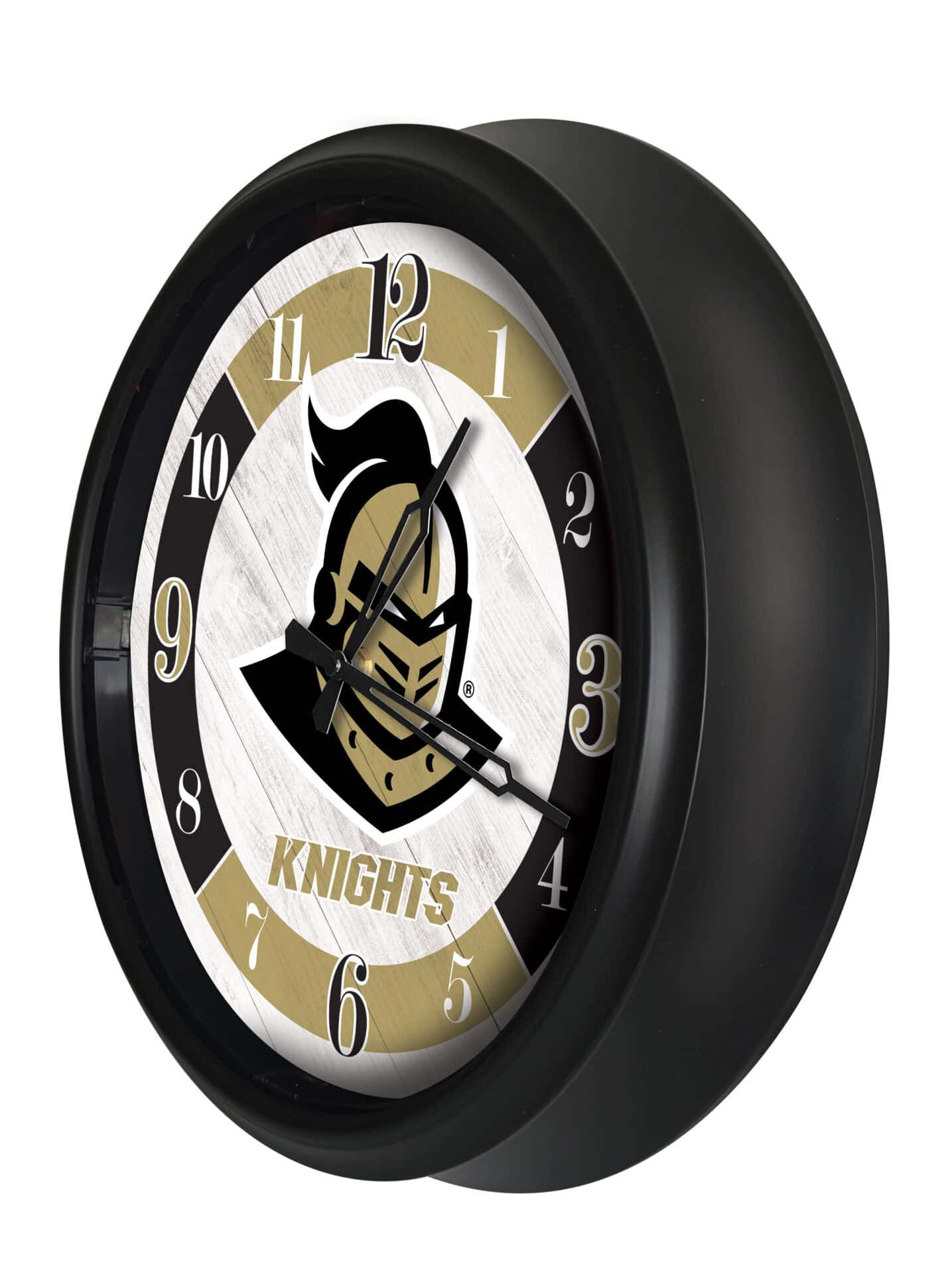 The University of Central Florida 14-Inch Indoor/Outdoor LED Wall Clock in Black is the ultimate addition to any fan’s space, combining functionality with vibrant school spirit. This clock is designed to withstand the elements, making it perfect for both indoor and outdoor use. Its durable construction features a UV resistant black ABS plastic casing and a weather-sealed glass face, ensuring that it remains looking great for years. The clock face is illuminated by four LED lights that automatically turn on when it gets dark, allowing you to easily check the time even in low light conditions. Powered by D batteries and featuring accurate quartz movement, this clock is a stylish way to show your pride.