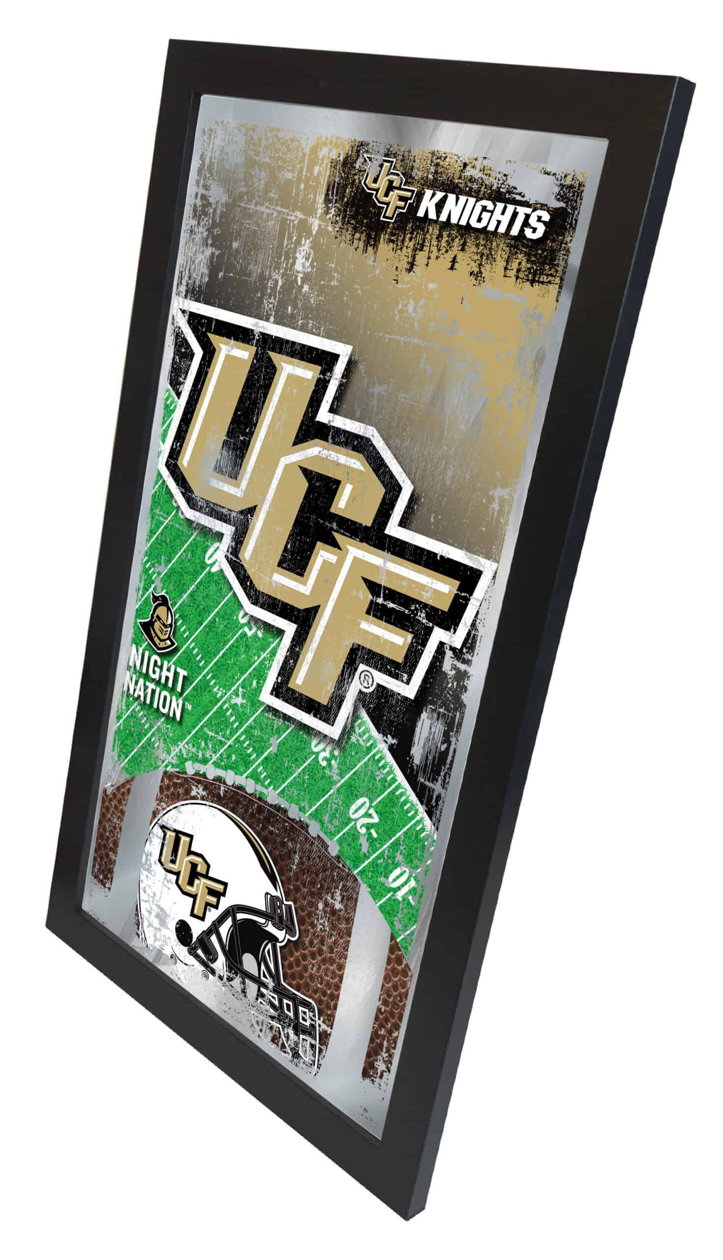 Show your school pride with this officially licensed University of Central Florida Football Wall Mirror. With its simple yet elegant design, vibrant colors burst through the 1/8″ thick glass, beautifully highlighted by mirrored accents. The mirror is framed with a black 1 1/4″ wrapped wood frame featuring dual saw-tooth hangers, making it ideal for your office, garage, or any room in the house. Whether you’re purchasing it as a gift for a recent graduate, a sports super fan, or for yourself, you can take satisfaction in knowing you’re getting a high-quality mirror.