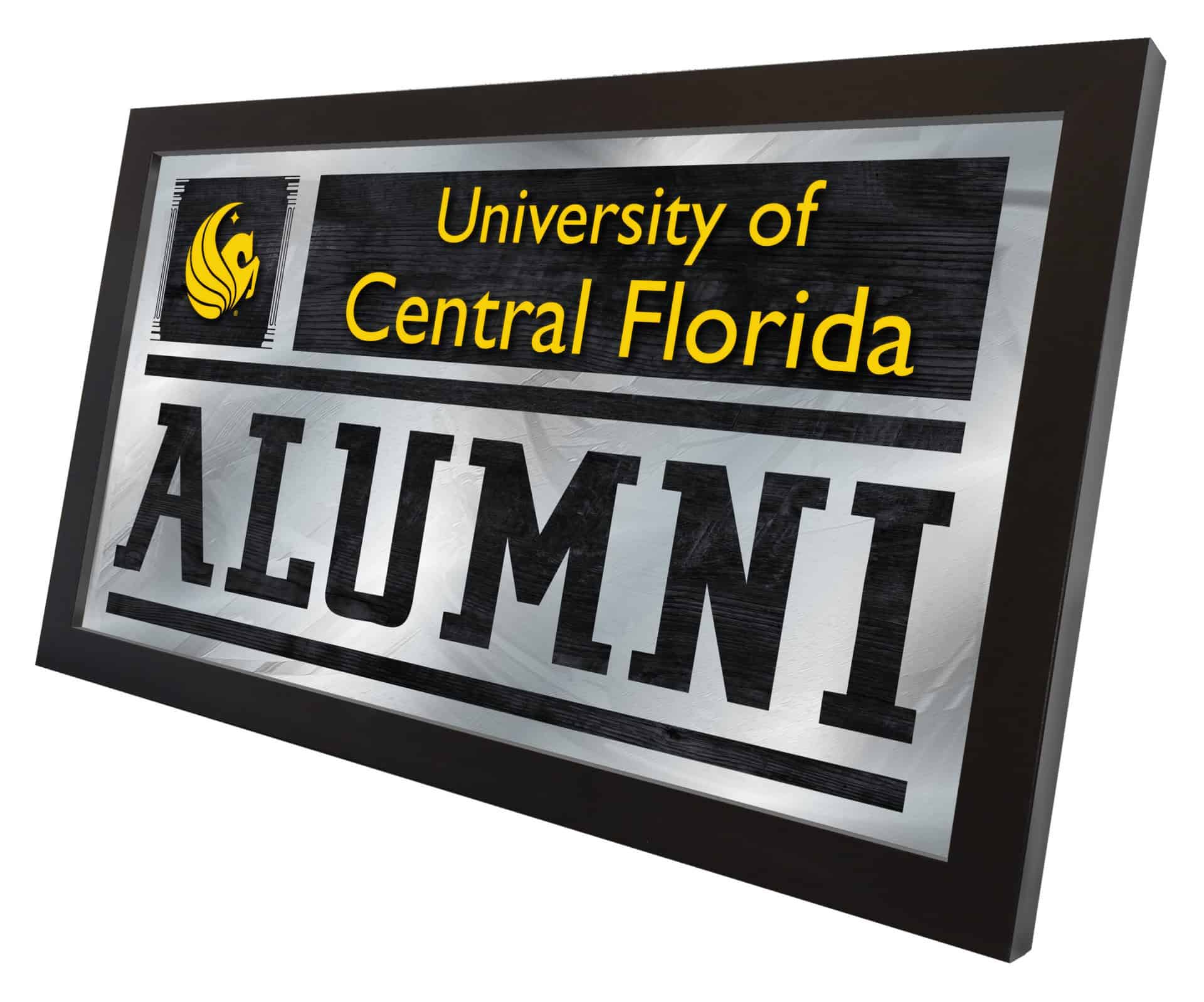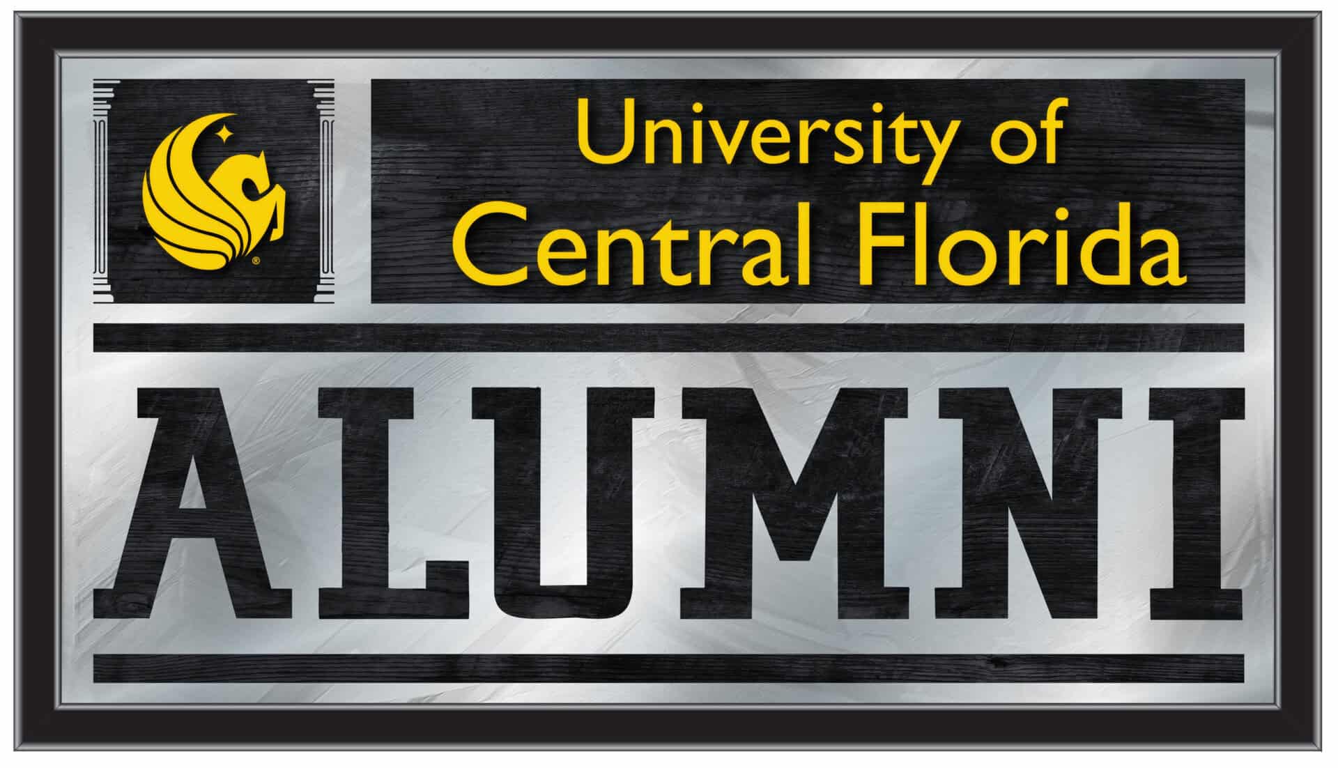 Show your school pride with the University of Central Florida 26×15 Alumni Wall Mirror. Featuring a simple yet elegant design, this mirror showcases vibrant school colors through its 1/8″ thick glass, beautifully enhanced by mirrored accents. The mirror is framed in a sleek black, 1 1/4″ wrapped wood frame and includes saw tooth hangers for easy mounting. Measuring 26″ in height and 15″ in width, it’s perfect for your office, garage, or any room in your home. Ideal as a gift for recent graduates or as a personal keepsake, this mirror is a great way to celebrate your alma mater.