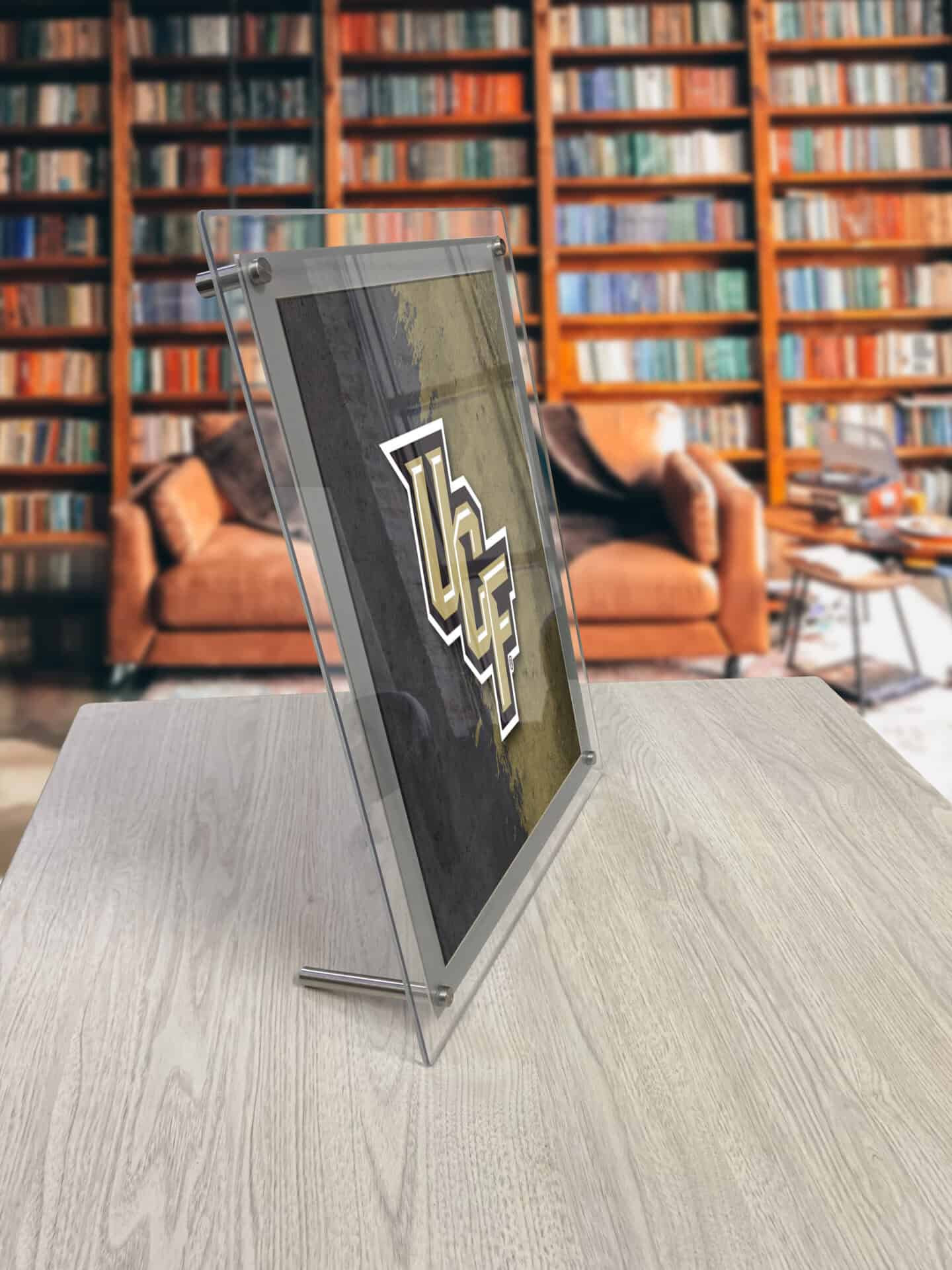 - Mounting Options: Includes hardware for wall mounting (1″ stand-offs) or desktop display (3 3/4″ foot).