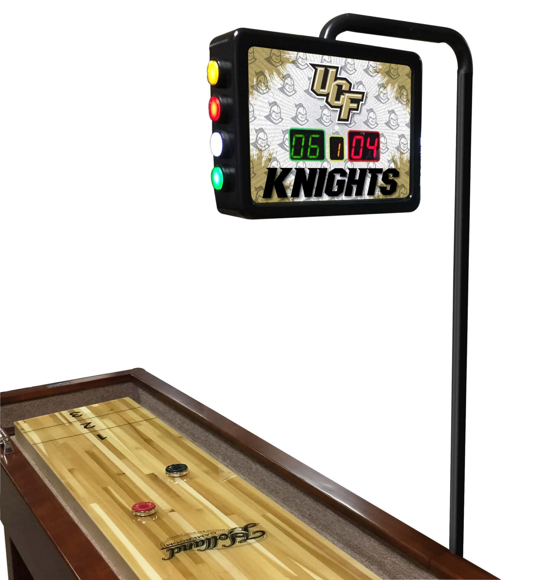 Elevate your shuffleboard game with this officially licensed electronic scoring unit designed for University of Central Florida fans. This innovative scoring system eliminates manual score tracking, providing a digital solution that makes keeping score simple and enjoyable. With color-coded buttons and an easy-to-read display, this scoring unit adds both functionality and excitement to your game room.
