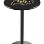 Enhance your bar, game room, or man cave with this high-quality 42-inch pub table. This table features a 30-inch diameter top with a sleek round base and a durable black wrinkle powder-coated finish. Designed for both durability and style, it includes a vibrant, scratch-resistant laminate top with a full-color design that maintains its pristine look over time. The sturdy construction ensures exceptional stability, while its adjustable feet make it suitable for any flooring. Easy to assemble and maintain, this pub table is a perfect addition to any space.