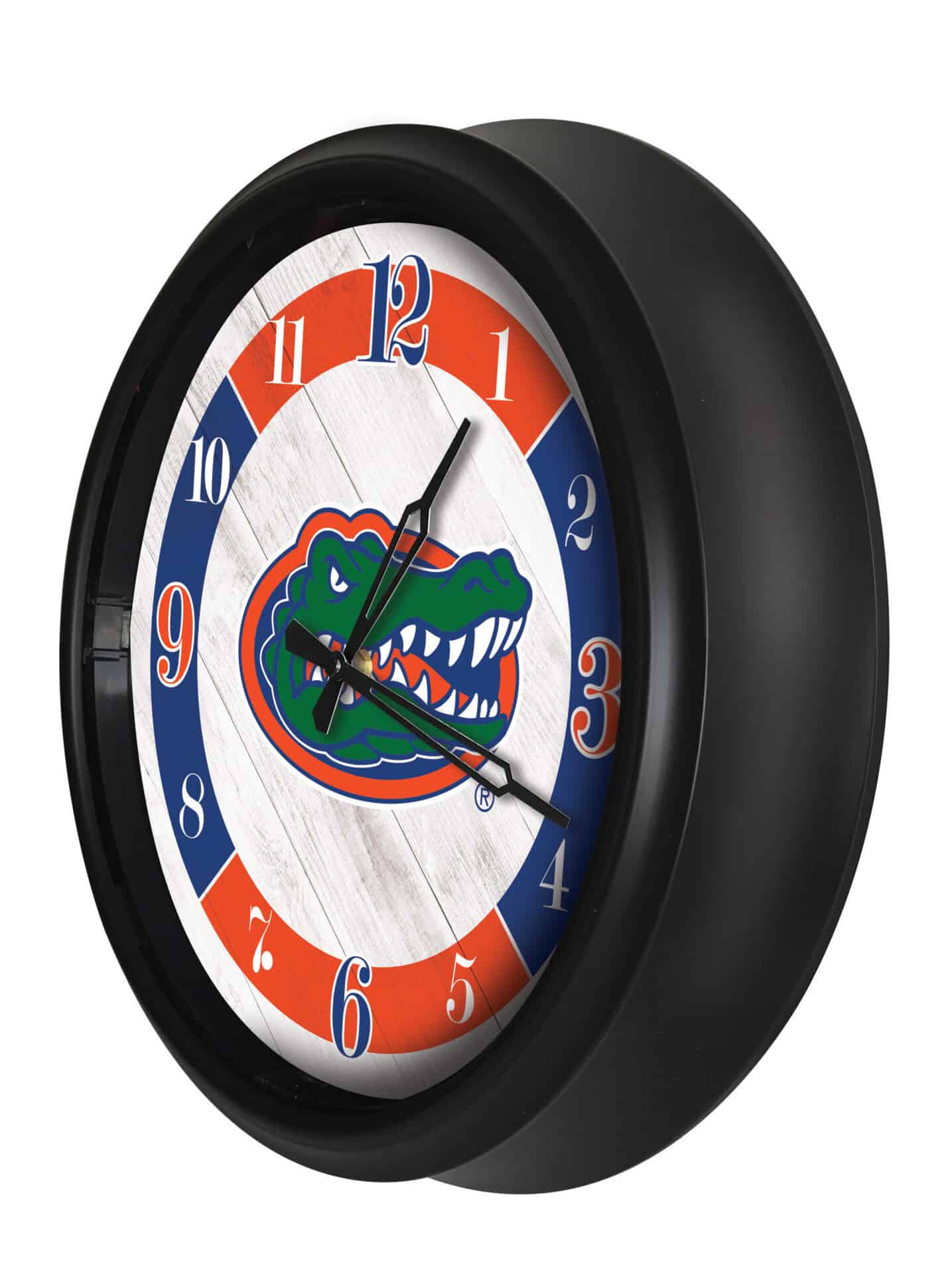The University of Florida 14-Inch Indoor/Outdoor LED Wall Clock in Black is the perfect addition to any space, allowing you to showcase your school pride while enjoying a functional timepiece. Designed for both indoor and outdoor use, this clock features a robust construction that withstands the elements. The vibrant artwork is digitally printed with UV inks, ensuring that the colors remain vivid and fade-free for years to come. The clock is equipped with LED lights that illuminate the clock face automatically in low light conditions, making it easy to read at any time of day or night.