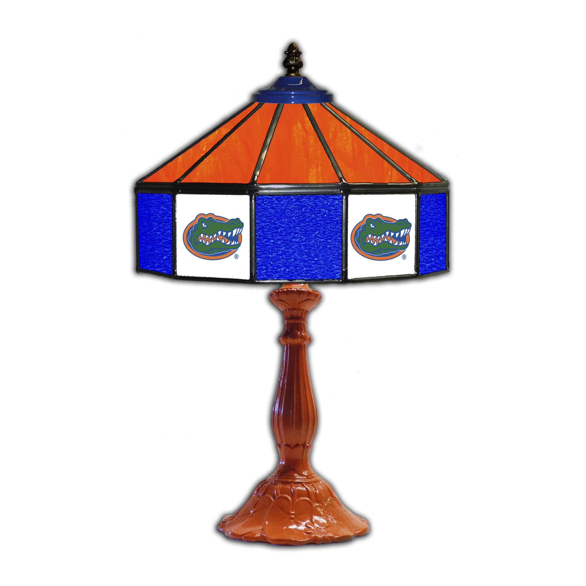 The lamp provides a warm and inviting glow, perfect for creating a cozy atmosphere in your game room, living room, or bedroom. With its intricate glass design and team-themed accents, this lamp is sure to be a conversation starter and a cherished item for any University of Florida enthusiast.