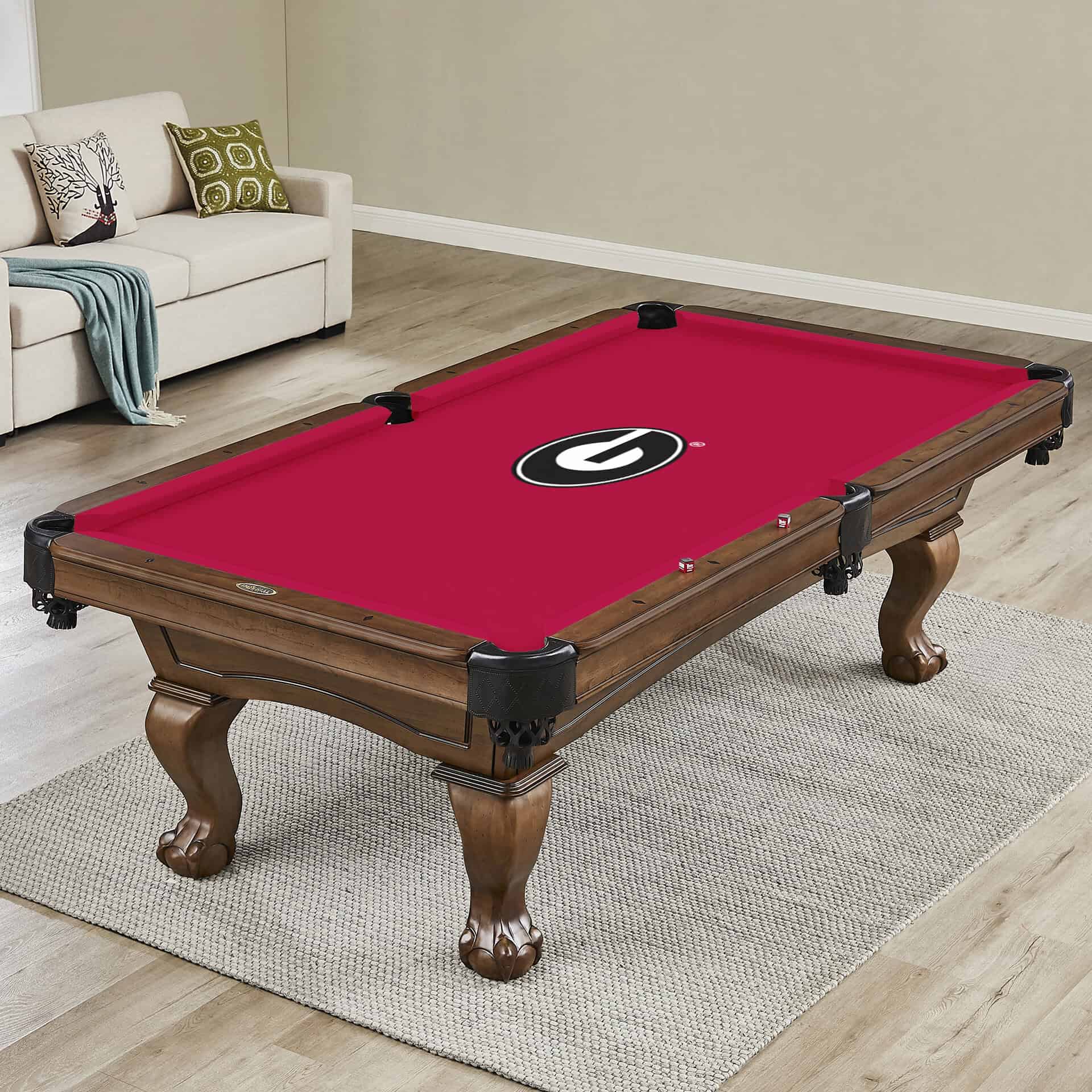 Show off your Georgia Bulldogs pride with this officially licensed 8 ft Pool Table Cloth! Upgrade your game room and let everyone know who you’re rooting for. This cloth is custom printed with high-quality materials and vibrant dyes, ensuring durability and a fantastic look. Get ready for a superior playing experience! The anti-friction coating provides consistent English and reduces ball marks, keeping your cloth looking great longer.