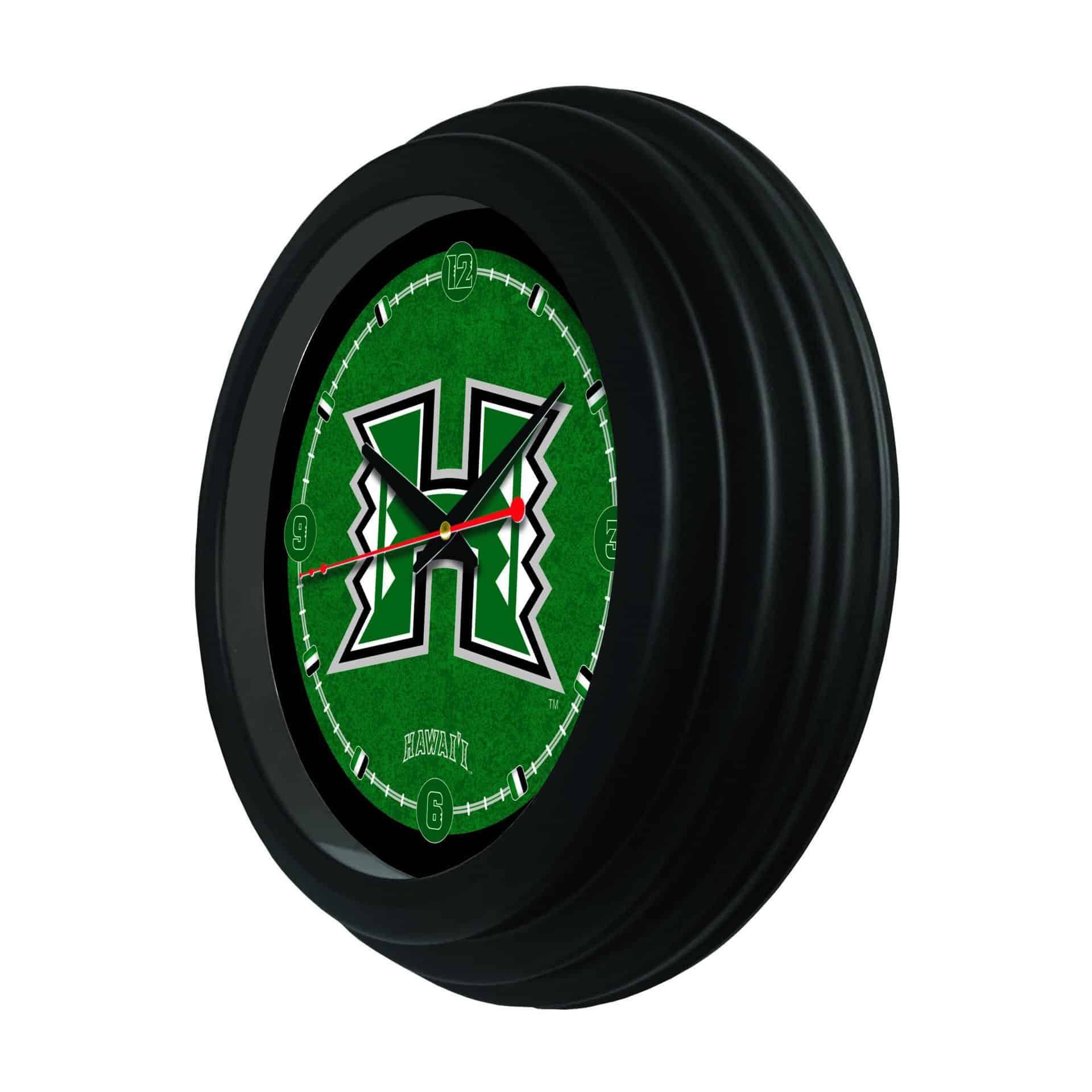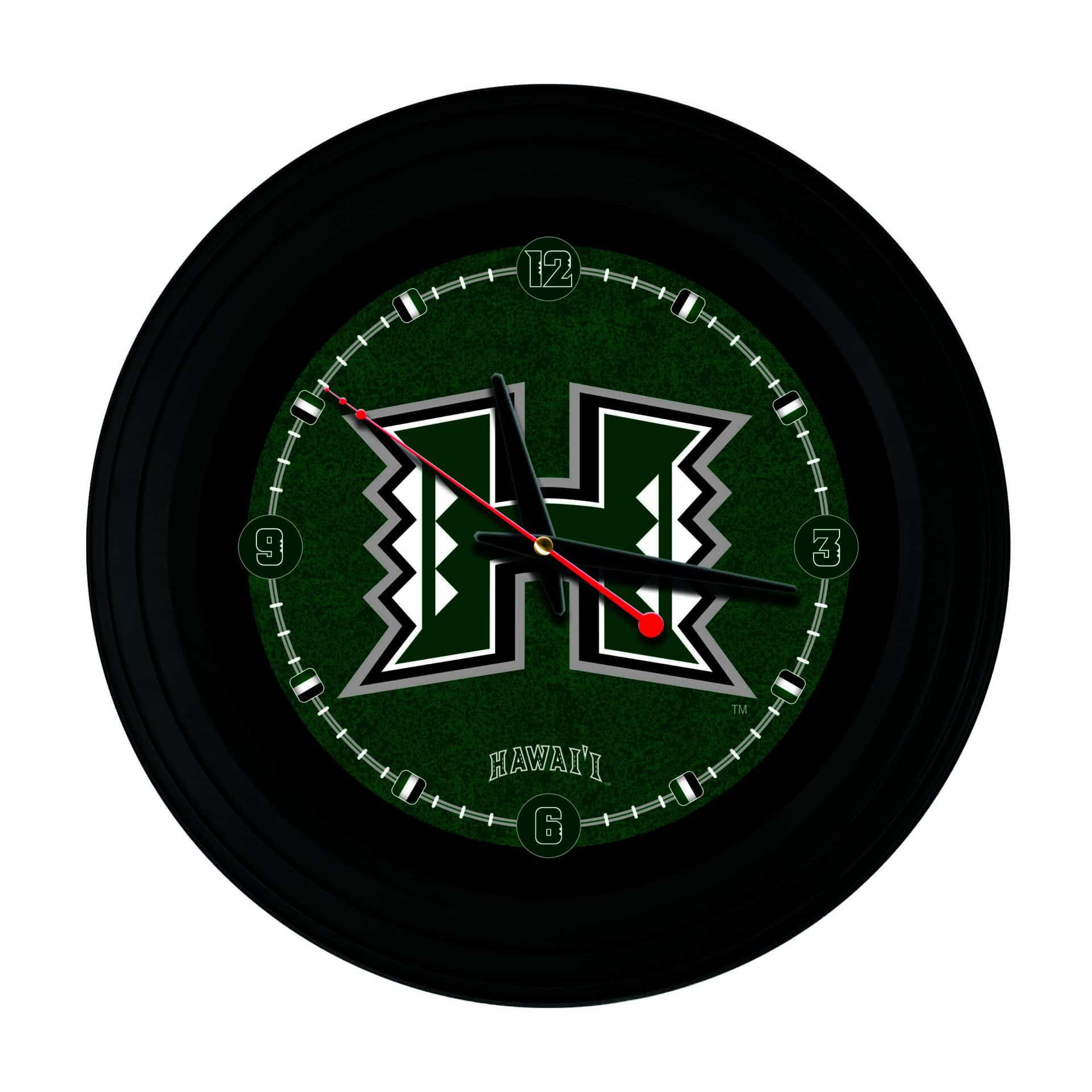 This University of Hawaii 15-Inch Wall Clock in Black is an ideal addition for any fan looking to showcase their school pride. Featuring vibrant, full-color graphics, this officially licensed clock not only tells time but also enhances your décor. The clock is designed with a sturdy black casing and a glass lens face that protects the stunning artwork while ensuring durability. Thanks to its accurate quartz movement, you can trust that you’ll always be on time. The recessed hanger allows for a flush mount against your wall, providing a clean and polished look. Whether for yourself or as a gift for a sports enthusiast, this clock is a perfect choice.