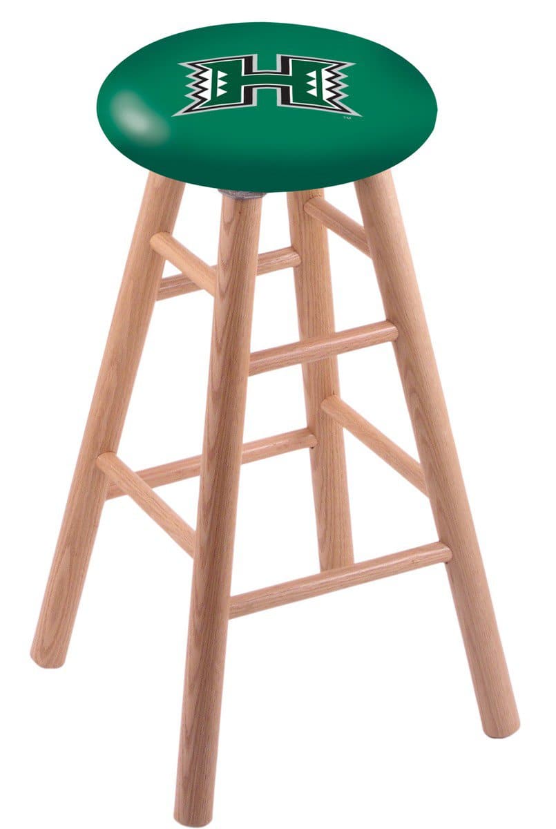 The “University of Hawaii 36″ Swivel Oak Extra Tall Bar Stool in Natural Finish” is a perfect addition to any sports-themed space or man cave. This premium extra-tall bar stool offers a combination of style, durability, and comfort, making it ideal for showcasing team loyalty. Crafted from high-quality solid oak, it features a durable swivel mechanism and a comfortable cushion seat designed for long-lasting use. The stool’s multi-step finishing process ensures a beautiful natural finish that complements any decor.