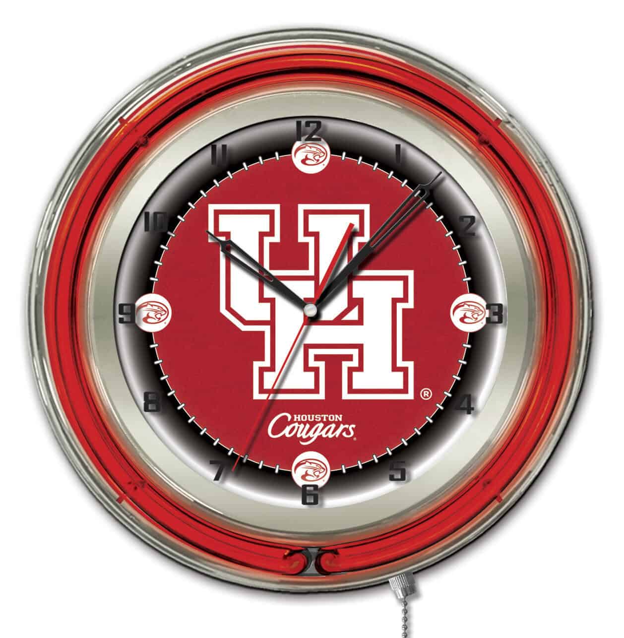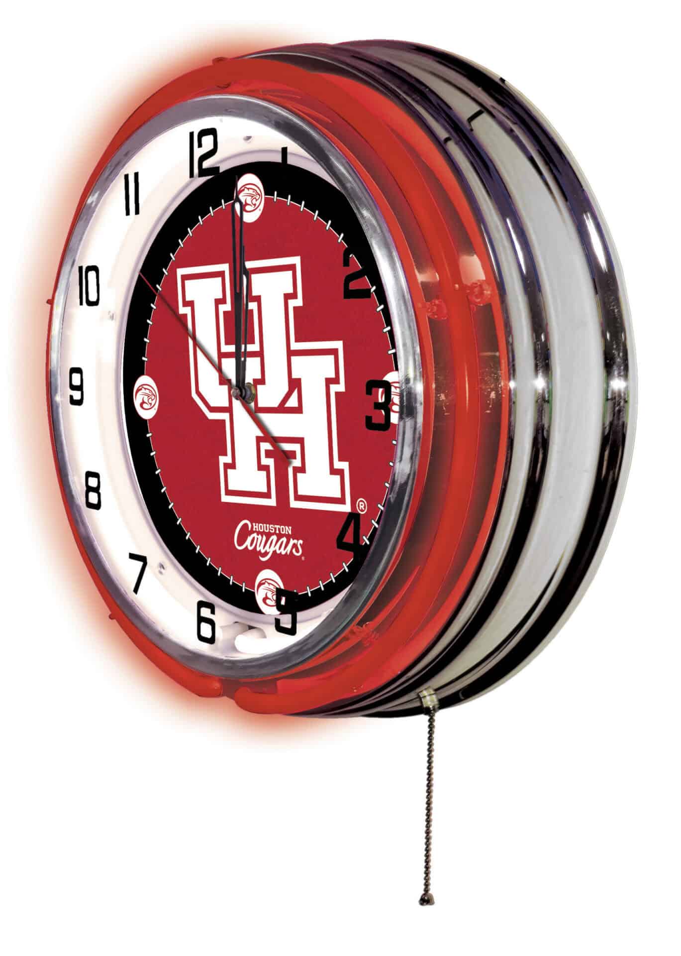 The University of Houston 19-Inch Neon Logo Clock in Chrome is the perfect addition to any fan’s space, showcasing vibrant school pride with its stunning design. This clock features a chic chrome casing, complemented by a neon outer ring in team colors and a brilliantly lit clock face. The dual neon tubes provide both accent lighting and illumination, creating a striking visual display. Easy to operate with a pull chain, this clock is powered by a standard 120V outlet, ensuring convenient use. With accurate quartz movement, you can rely on this clock to keep perfect time, making it an ideal gift for graduates, sports enthusiasts, or for personal enjoyment.