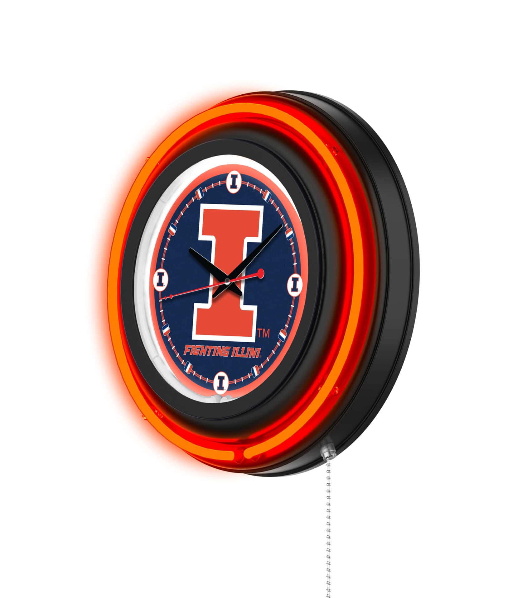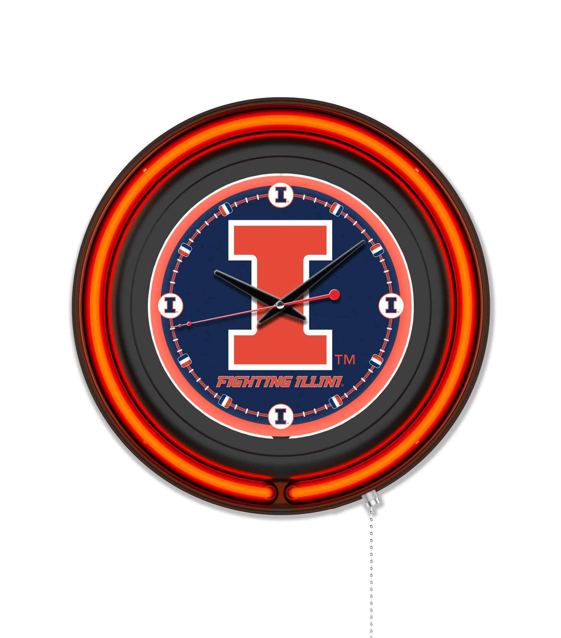 The University of Illinois 15-Inch Neon Logo Clock in Black is a vibrant addition to any space, especially for fans looking to showcase their school pride. With a stunning design featuring a black casing and a neon outer ring in team colors, this clock illuminates your favorite logo with brilliant white neon light. It’s not only a stylish decor piece but also a functional timekeeper with accurate quartz movement.