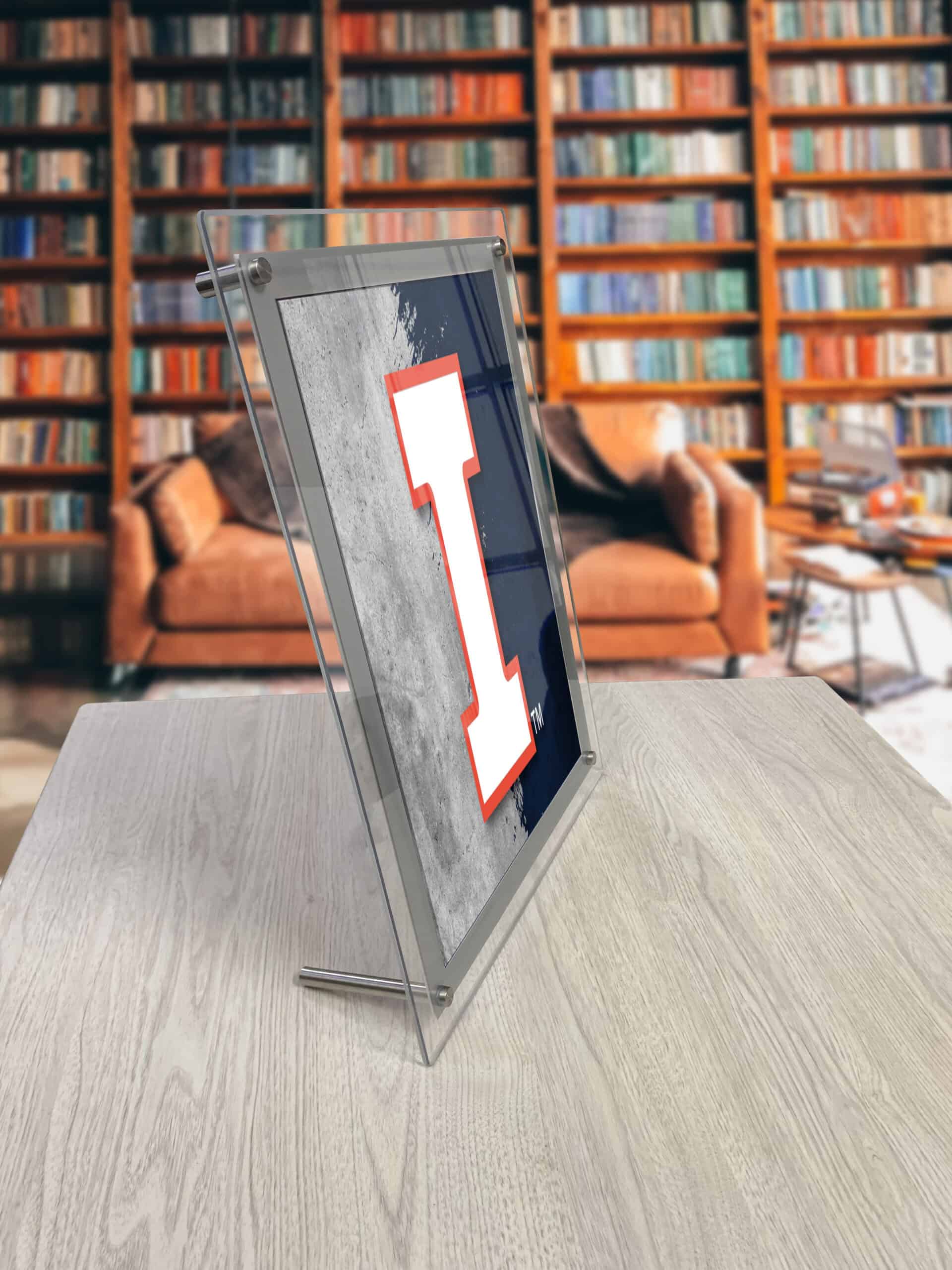 - Mounting: Includes hardware for wall mounting (1″ Stand-offs) or desktop display (3 3/4″ foot).