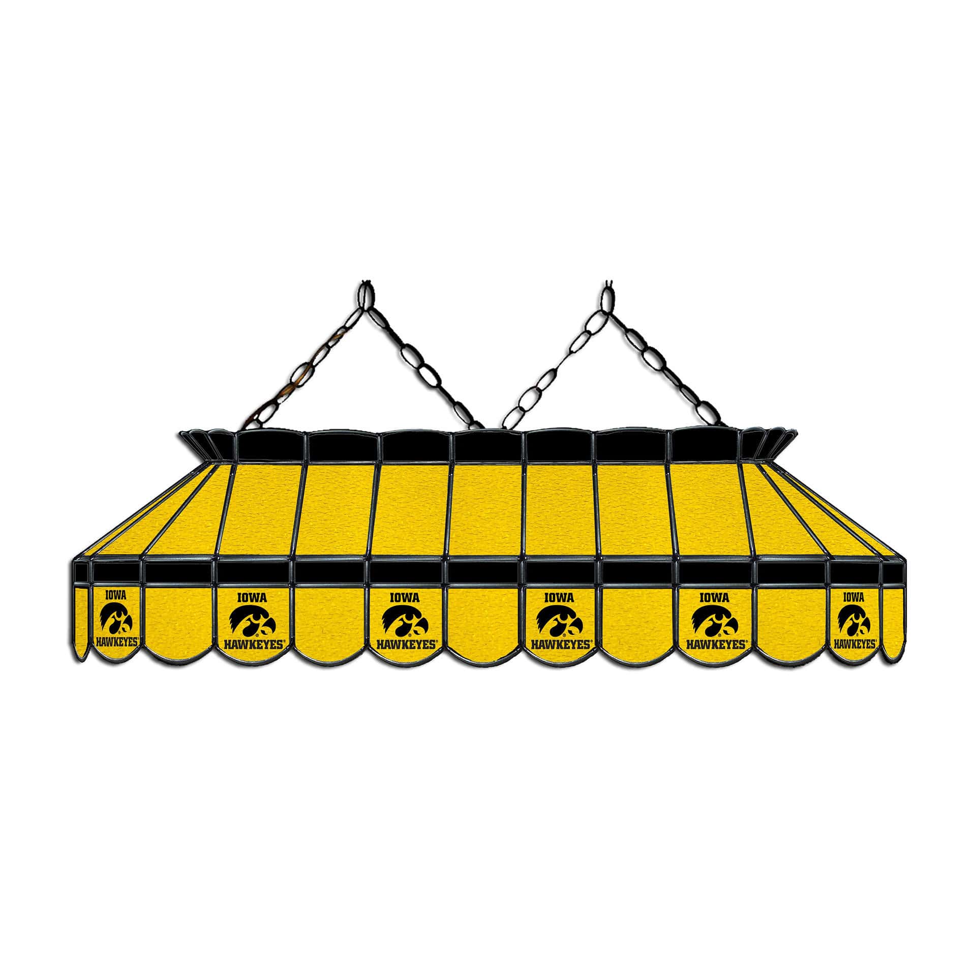 Light up your game room with the University of Iowa 40 Inch Stained Glass Billiard Lamp. This lamp features hand-cut stained glass with team colors and logos, adding a touch of team spirit to your pool table area. Enhance your game room’s atmosphere while showcasing your team pride. The lamp includes everything needed for easy installation.