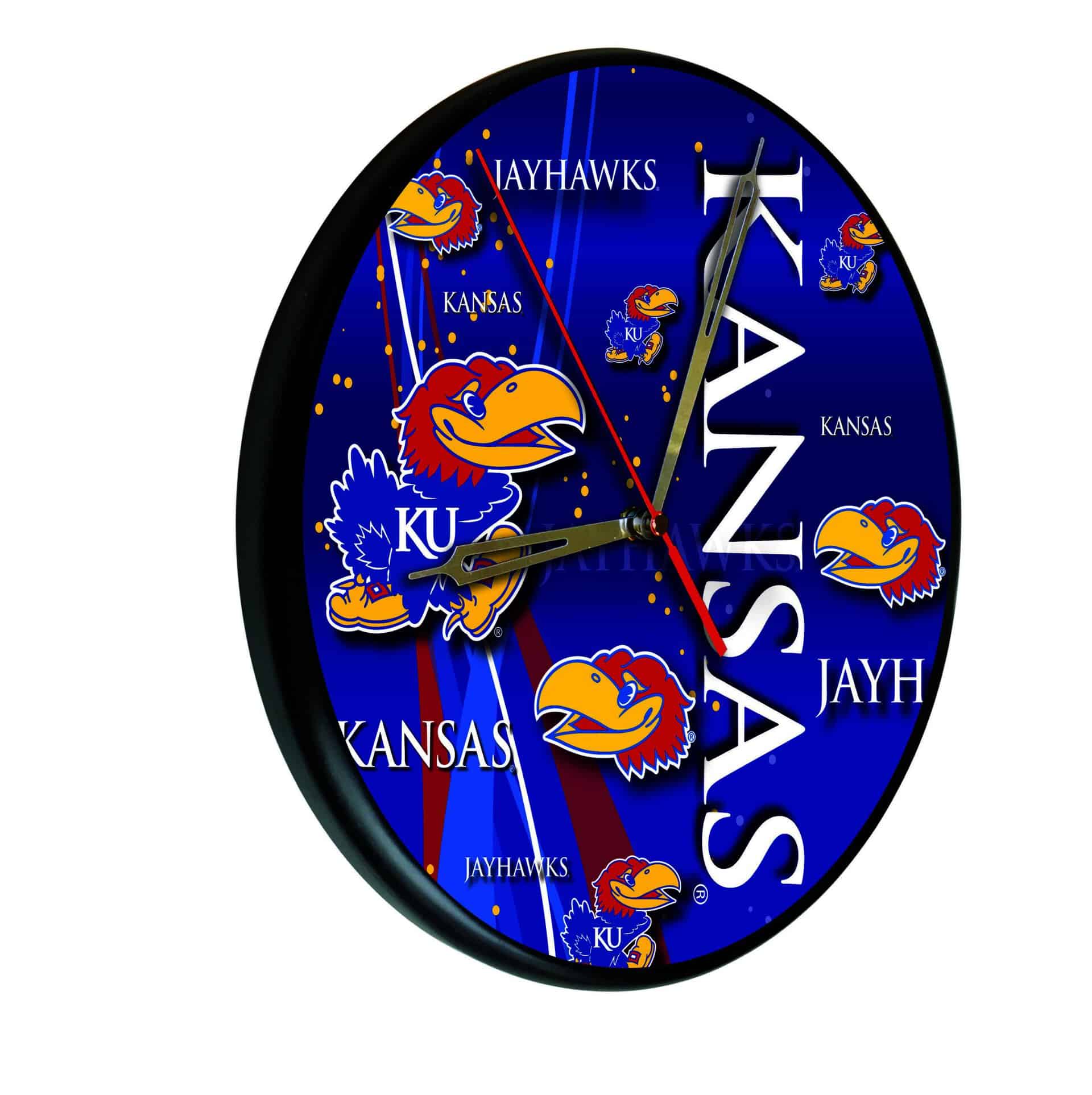 Show your school pride with the University of Kansas 13-Inch Solid Wood Clock in Black. This officially licensed clock combines timeless design with durable craftsmanship, making it a perfect addition to any man cave, office, or home decor. Featuring first-surface, digitally printed graphics with UV inks, this clock ensures vibrant colors that won’t fade over time. Powered by accurate quartz movement and a single AA battery (not included), it offers reliable timekeeping. The recessed keyhole hanger allows the clock to hang flat against the wall, providing a clean and polished look. Whether as a gift for a recent graduate, a sports enthusiast, or for yourself, this clock is a proud representation of quality and school spirit.