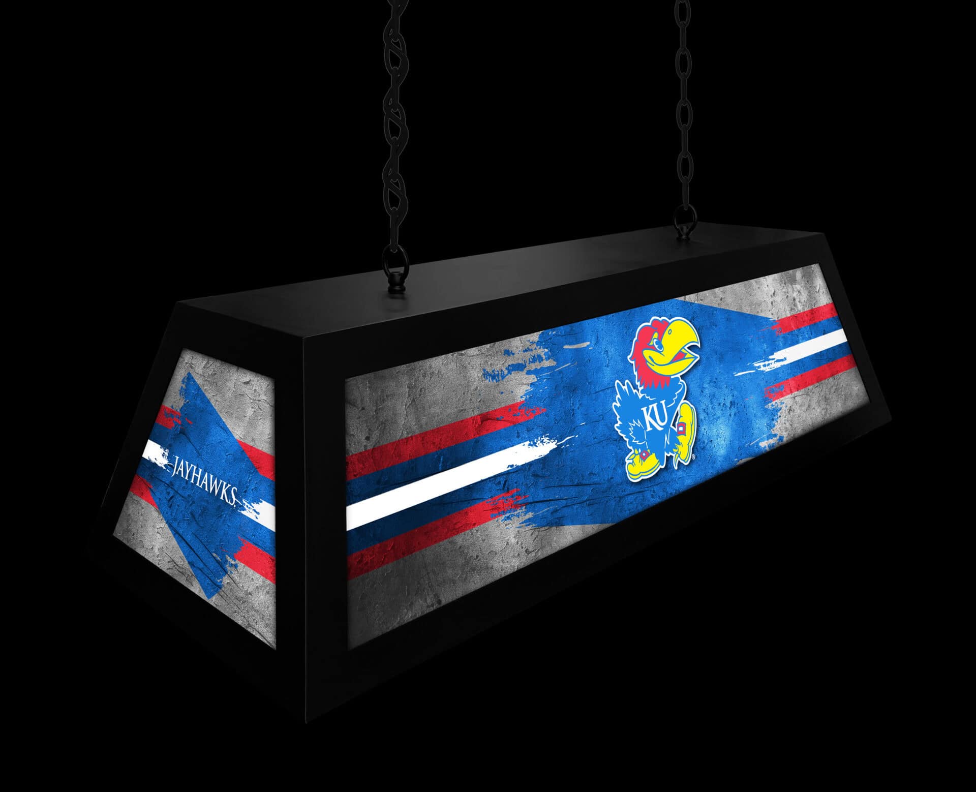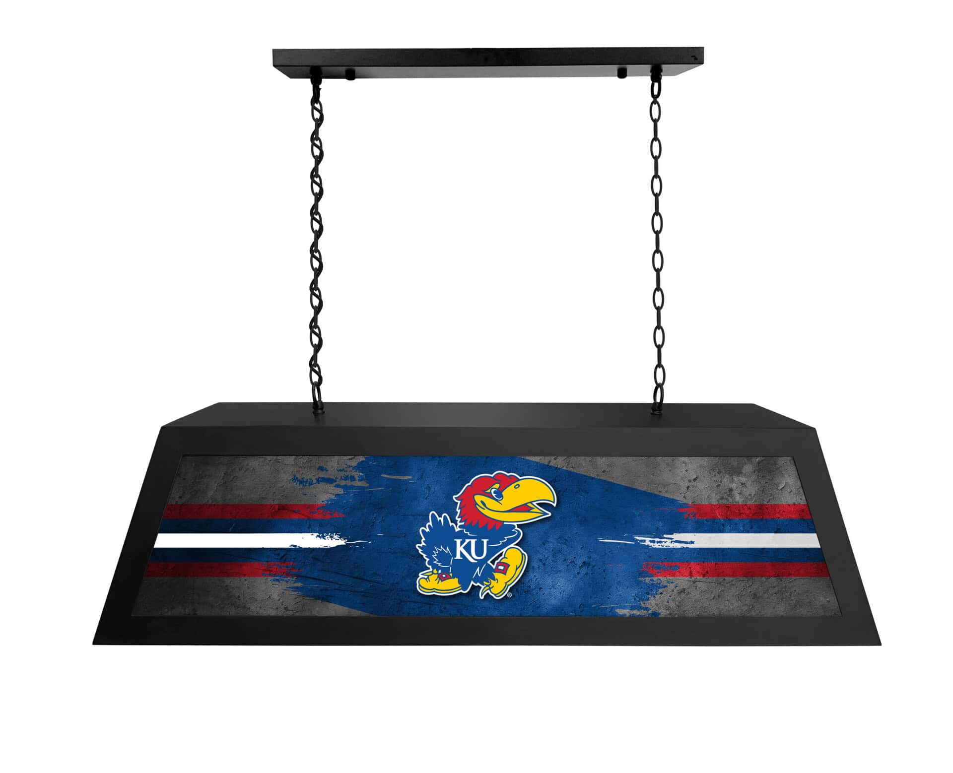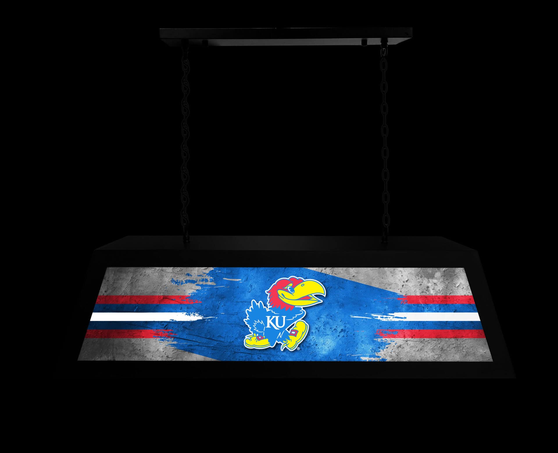 The University of Kansas Long Box Billiard Light is a high-quality, suspended light fixture designed to enhance your game room, billiard table area, or bar. Its metal frame construction and bright, backlit design provide excellent illumination and a touch of team spirit. Featuring officially licensed logos, this light adds the perfect finishing touch to your space. Enjoy vibrant graphics, durable construction, and easy operation.