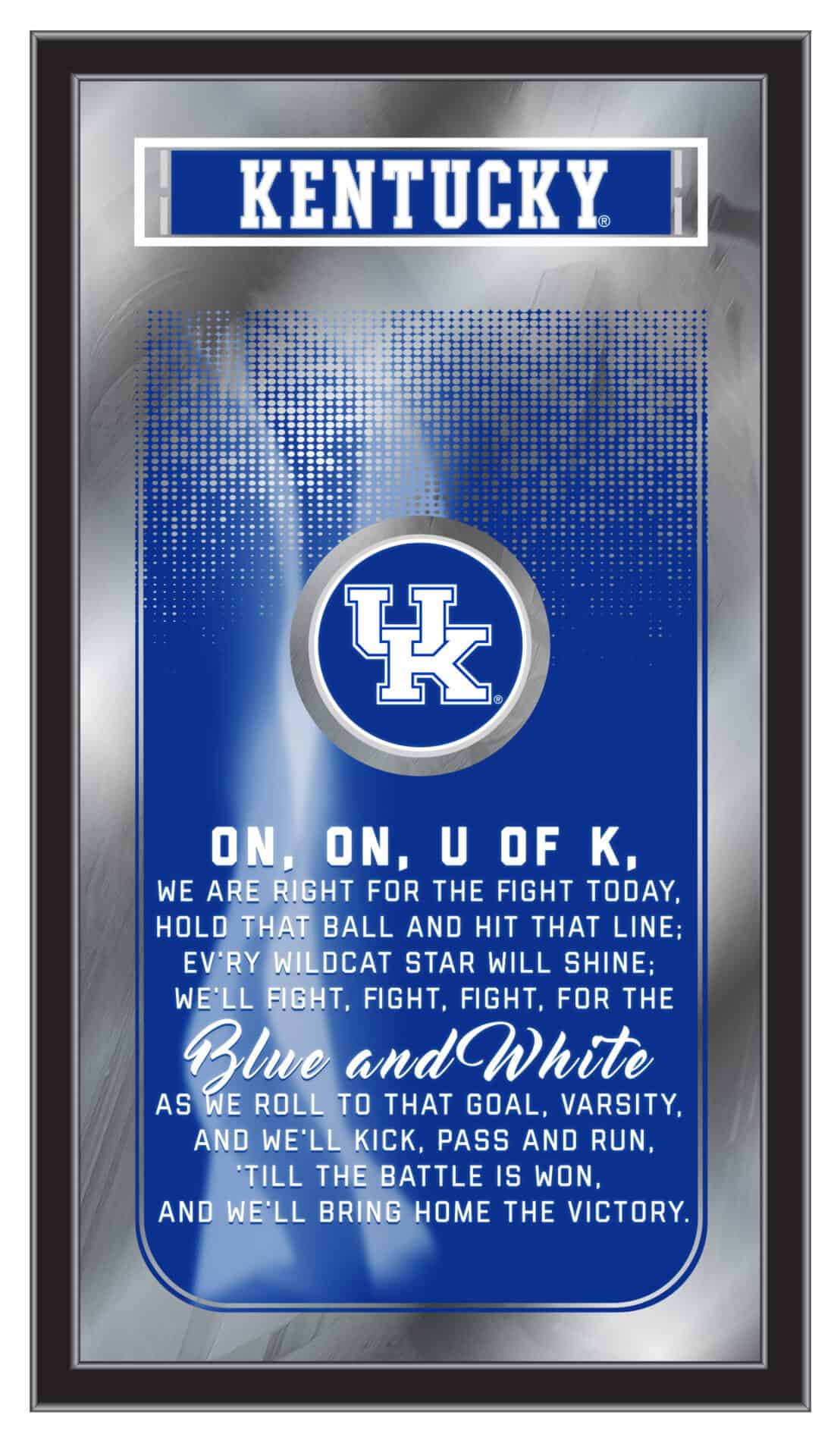 The perfect way to show your school pride, the University of Kentucky 26×15 Fight Song Wall Mirror displays your school’s logo and the verses that get you fired up on game day, all while fitting seamlessly into any setting. With its simple yet elegant design, the vibrant colors burst through the 1/8″ thick glass and are beautifully highlighted by the mirrored accents. Framed with a stylish black, 1 1/4″ wrapped wood frame and equipped with saw tooth hangers, this mirror measures 26″ (H) x 15″ (W), making it ideal for your office, garage, or any room in the house. Whether you’re purchasing it as a gift for a recent grad, a sports super fan, or treating yourself, you can feel proud knowing you’re investing in a quality product that enhances your space.