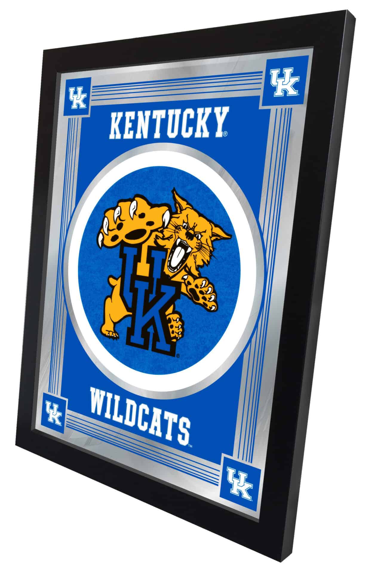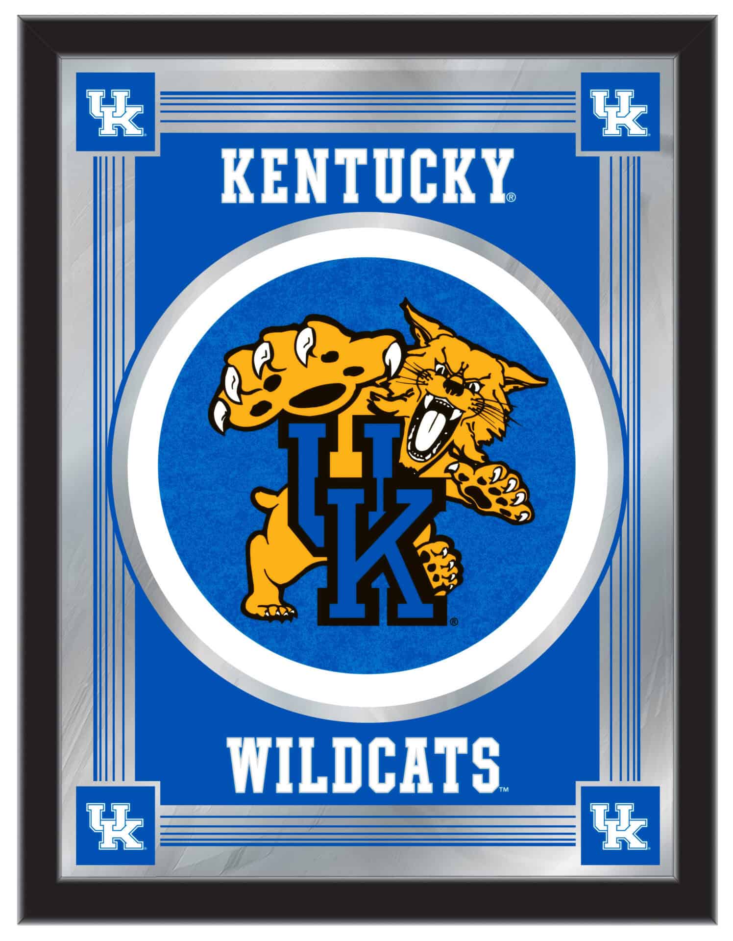 Show your school pride with the University of Kentucky (Cat) 17×22 Logo Wall Mirror. This officially licensed logo mirror features a simple yet elegant design that showcases vibrant colors through a 1/8″ thick glass, beautifully highlighted by mirrored accents. The mirror is framed with a sleek black, 1 1/4″ wrapped wood frame and includes saw-tooth hangers, making it a perfect addition to your office, garage, or any room in your home. Whether you’re purchasing it as a gift for a recent grad, a sports superfan, or for yourself, you can enjoy the satisfaction of owning a quality mirror.