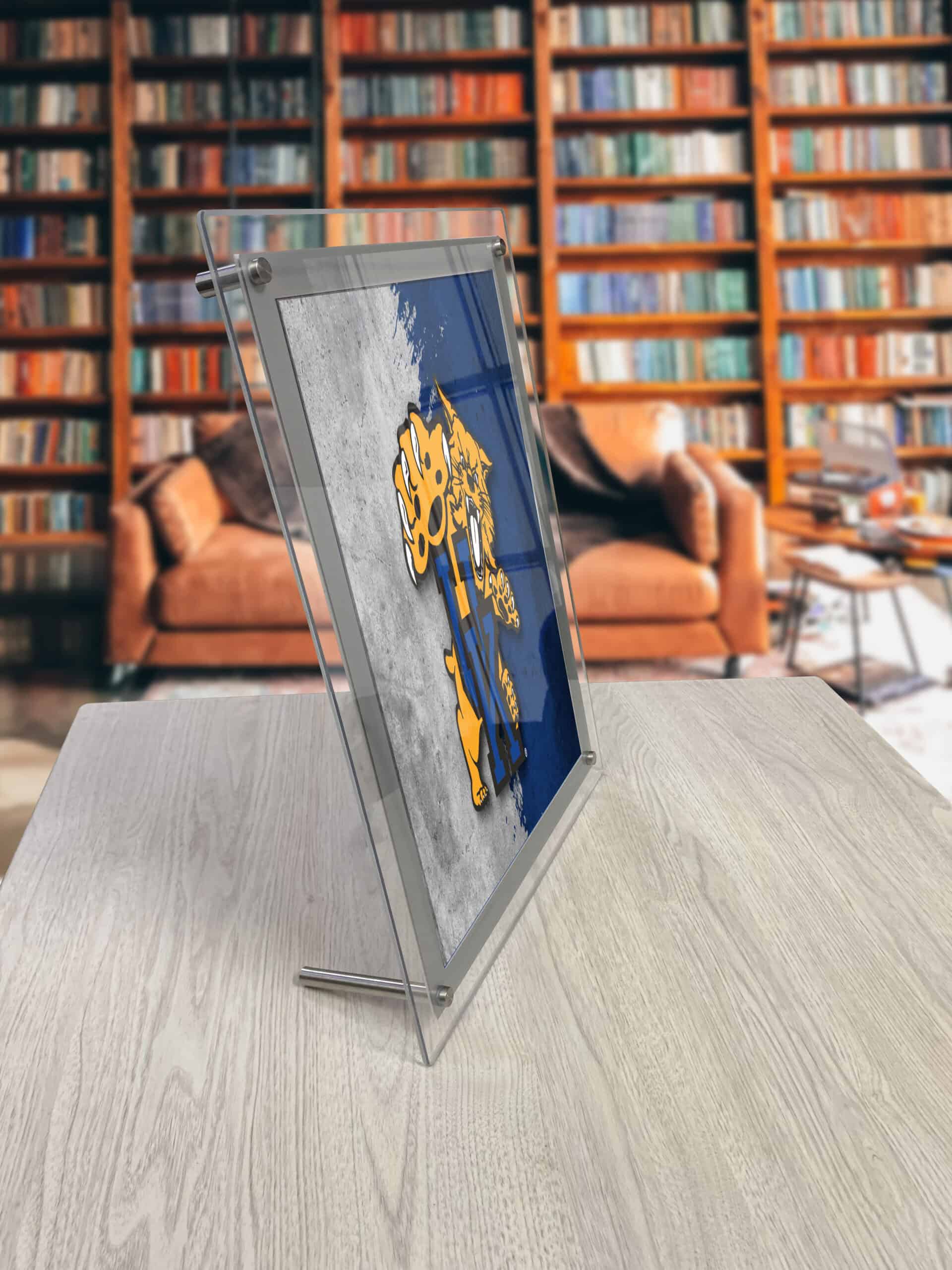 - Mounting: Includes hardware for wall mounting (1″ Stand-offs) or desktop display (3 3/4″ foot).