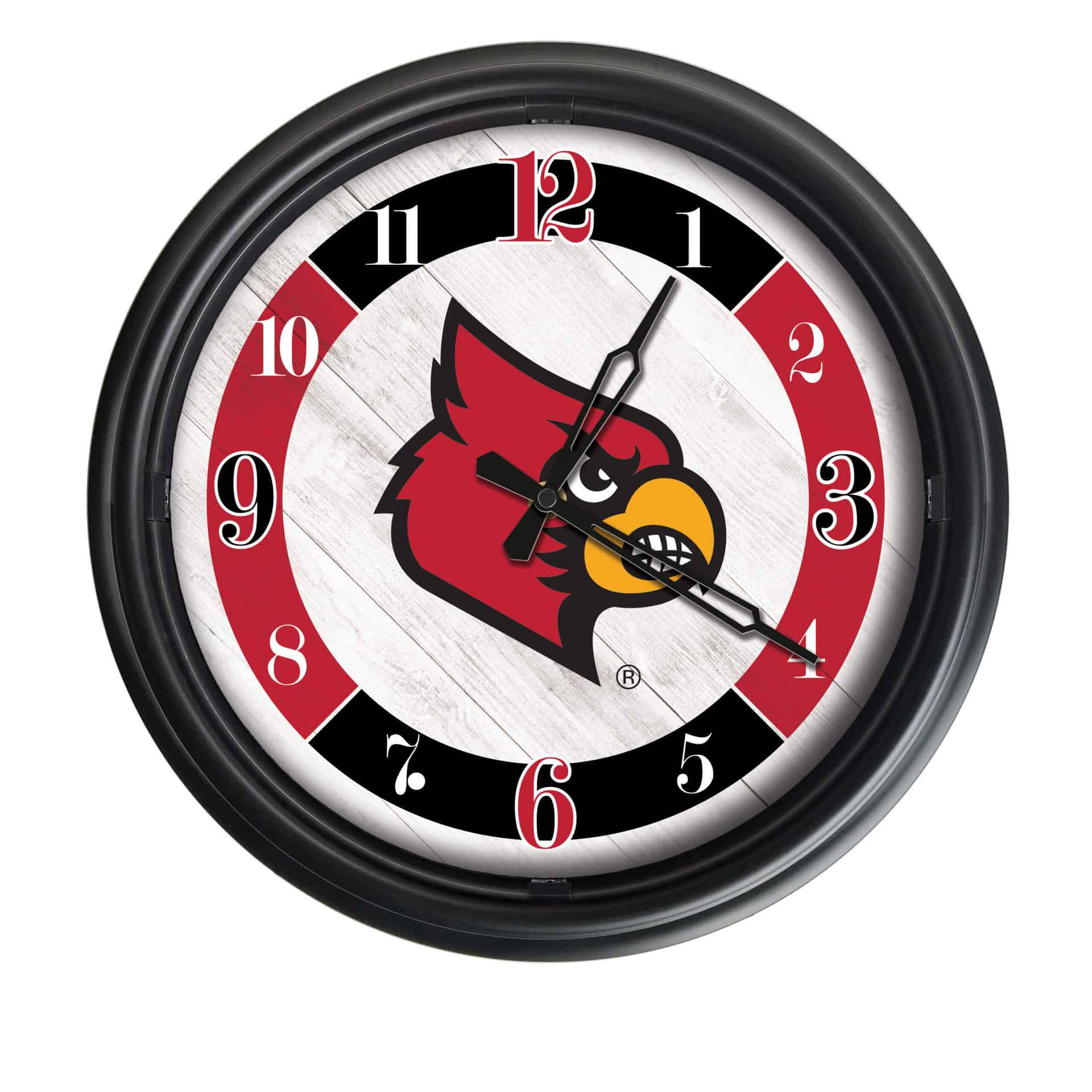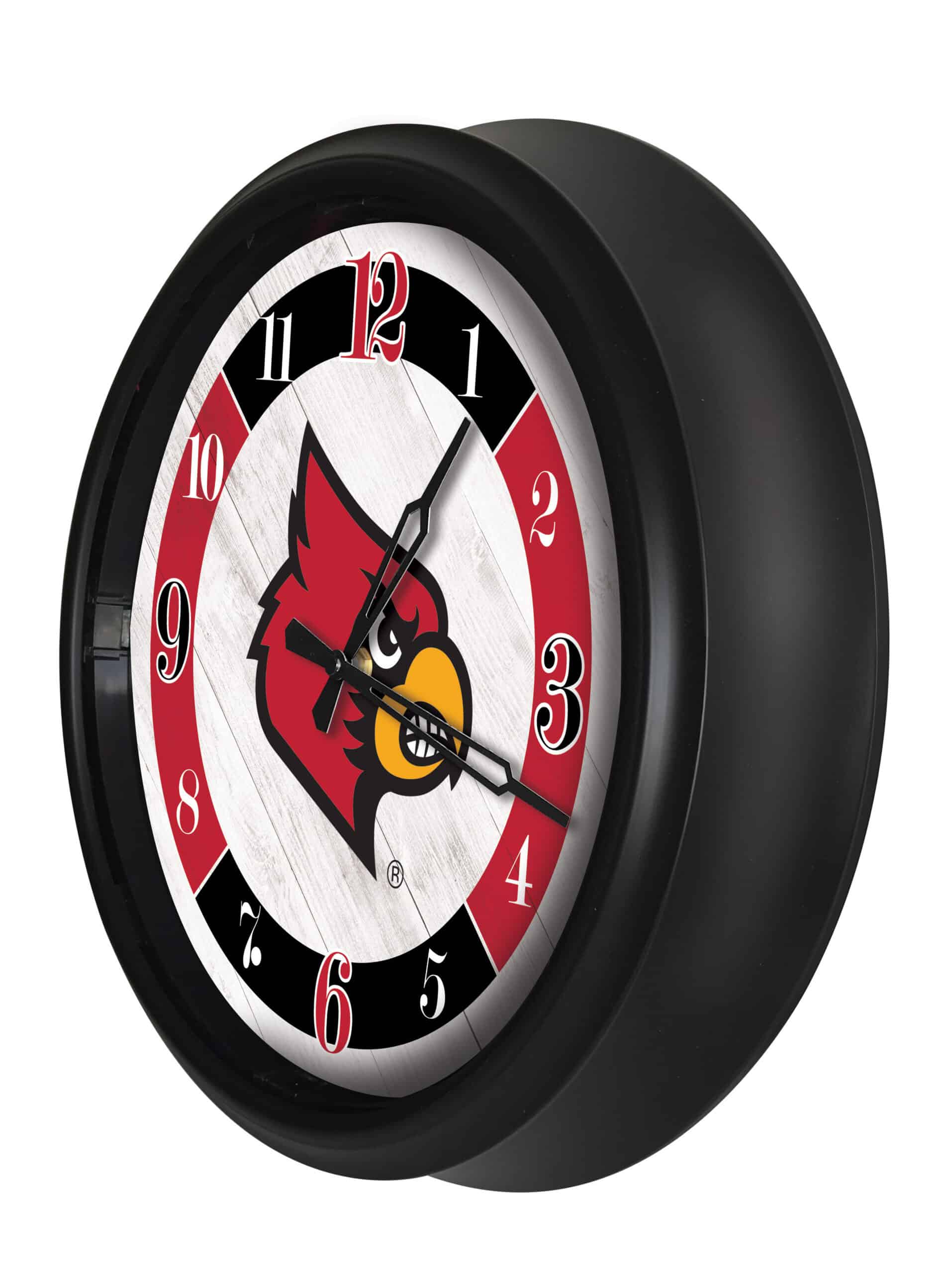 The University of Louisville 14-Inch Indoor/Outdoor LED Wall Clock in Black is a stylish and functional addition to any space, perfect for showcasing your school pride. With its weather-resistant construction and vibrant, UV-printed artwork, this clock is designed to withstand the elements while offering easy visibility both indoors and outdoors.