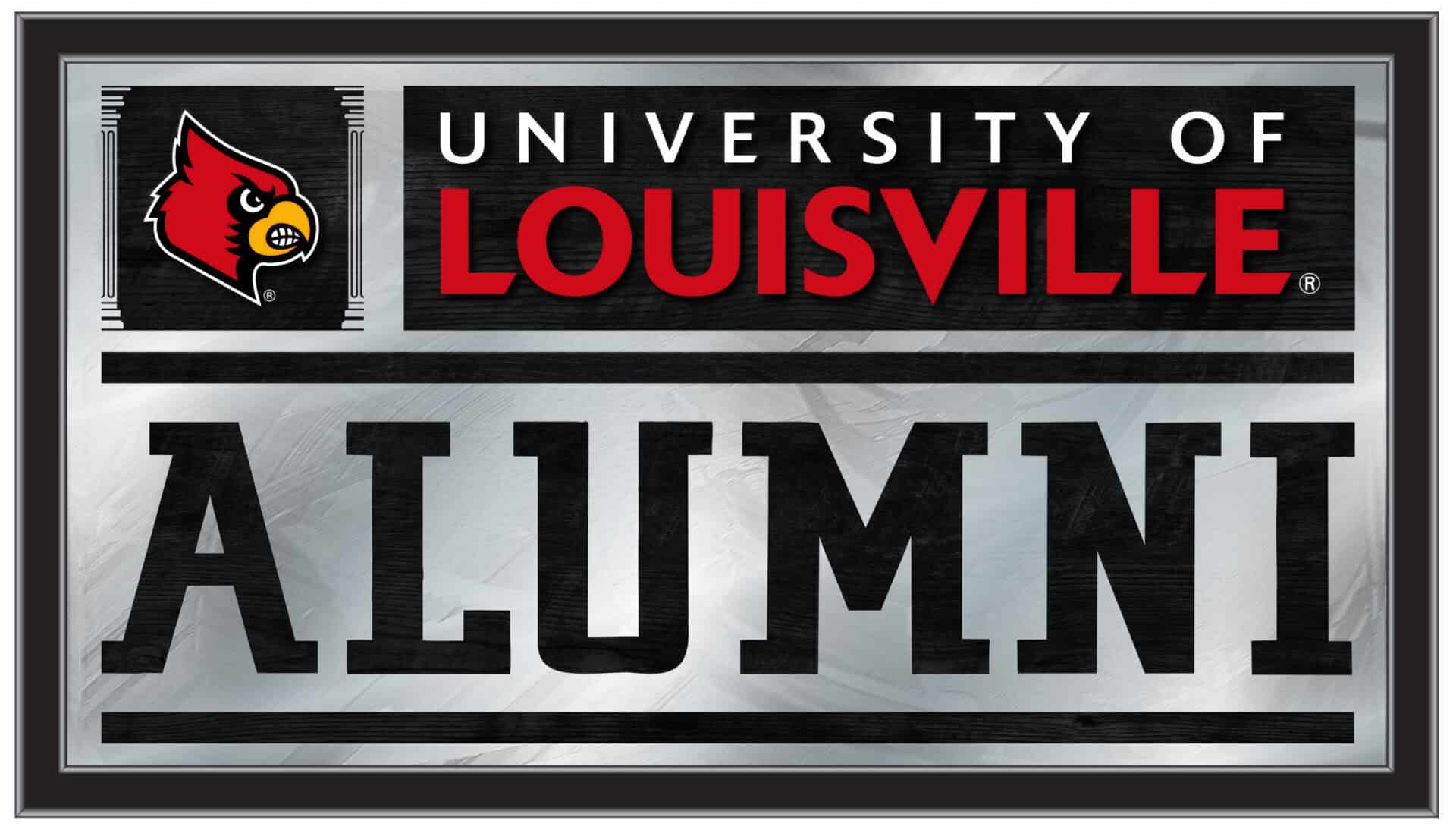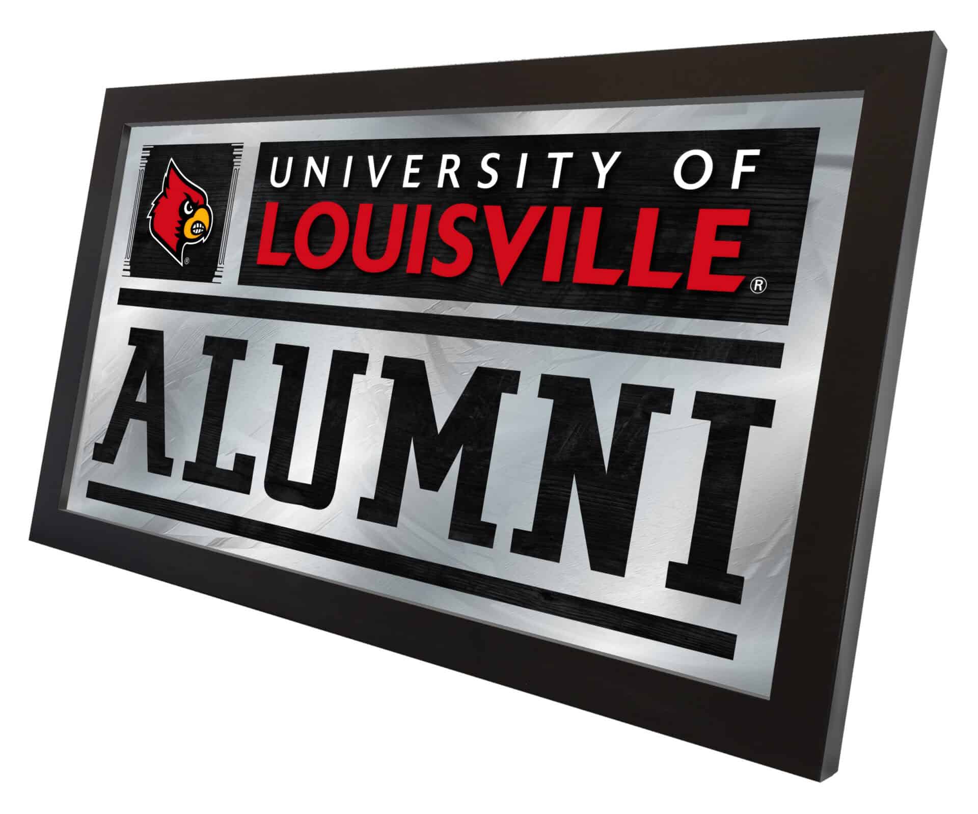 Show your school pride with the University of Louisville 26×15 Alumni Wall Mirror. This mirror features a simple yet elegant design, where your school colors burst through the 1/8″ thick glass, enhanced by mirrored accents. The mirror is framed with a sturdy black, 1 1/4″ wrapped wood frame and includes saw tooth hangers for easy installation. Measuring 26″ in height and 15″ in width, it’s perfect for your office, garage, or any room in your home. Whether you’re gifting it to a recent graduate or adding it to your own decor, this mirror is a stylish way to showcase your alumni spirit.
