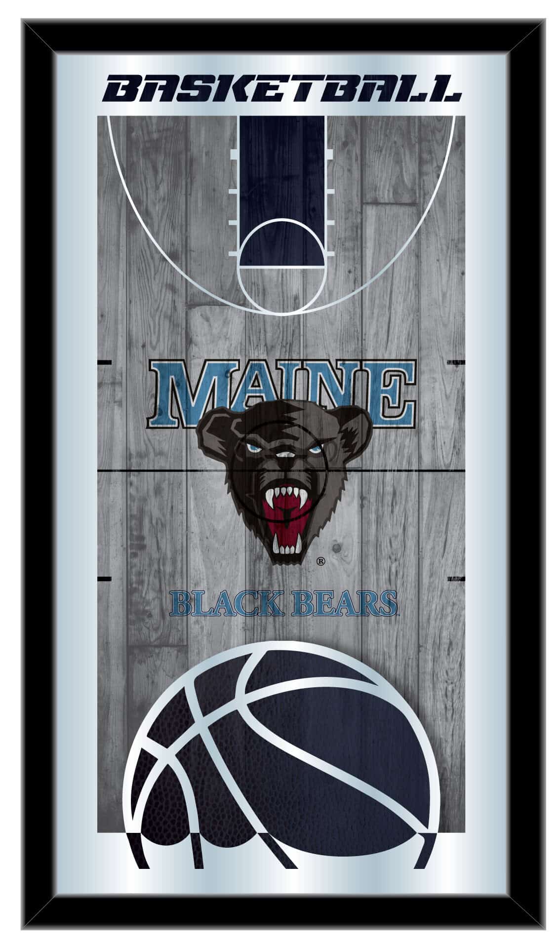 Show your school pride with this Official Licensed Basketball Mirror. With its simple yet elegant design, vibrant colors burst through the 1/8″ thick glass and are accentuated by the mirrored edges. Framed with a sleek black, 1 1/4″ wrapped wood frame and equipped with dual saw-tooth hangers, this mirror measures 15″ in height and 26″ in width, making it perfect for your office, garage, or any room in your home. Whether you’re buying it as a gift for a recent graduate, a sports super fan, or for yourself, you can take satisfaction knowing you’re choosing a high-quality mirror.