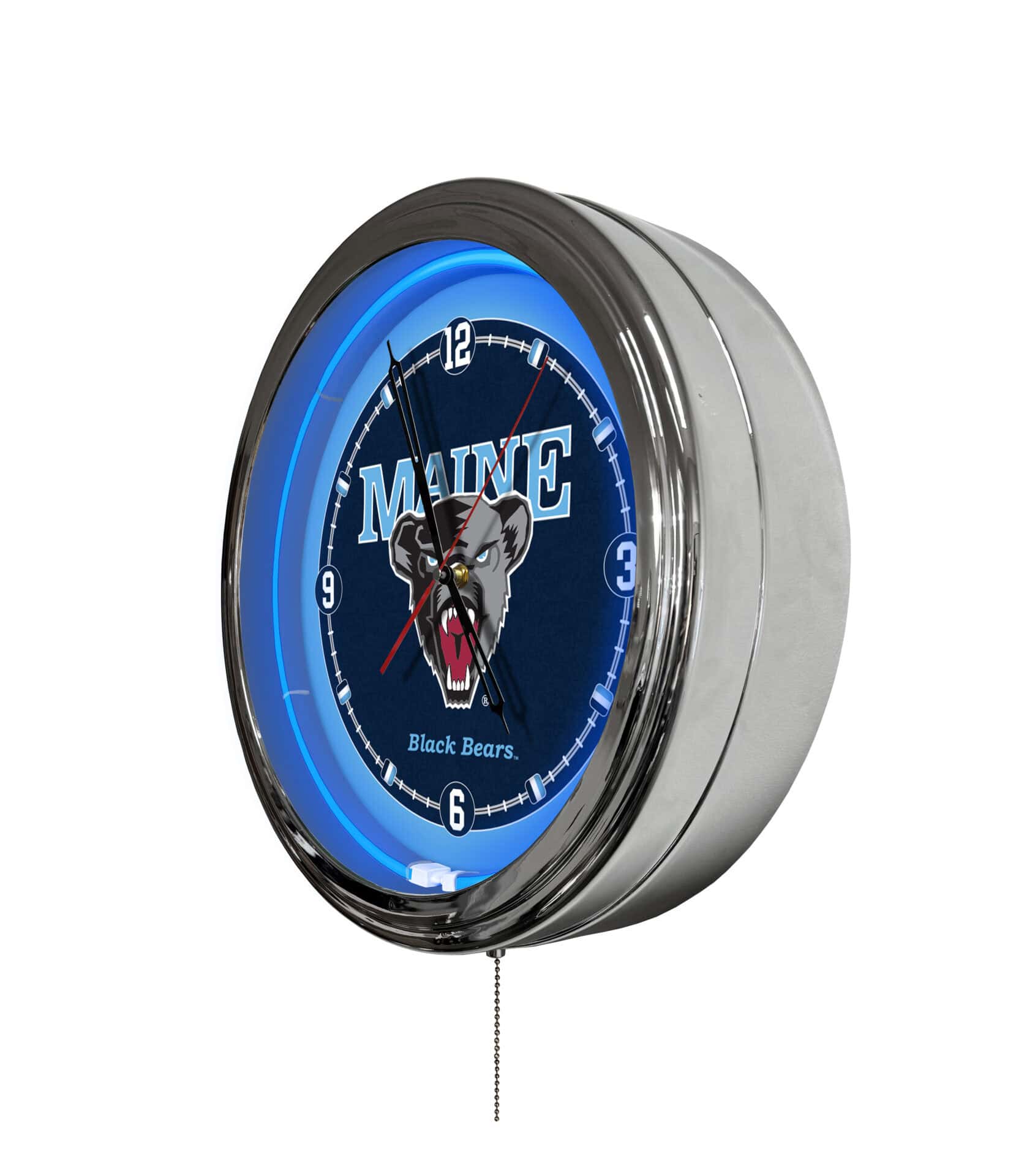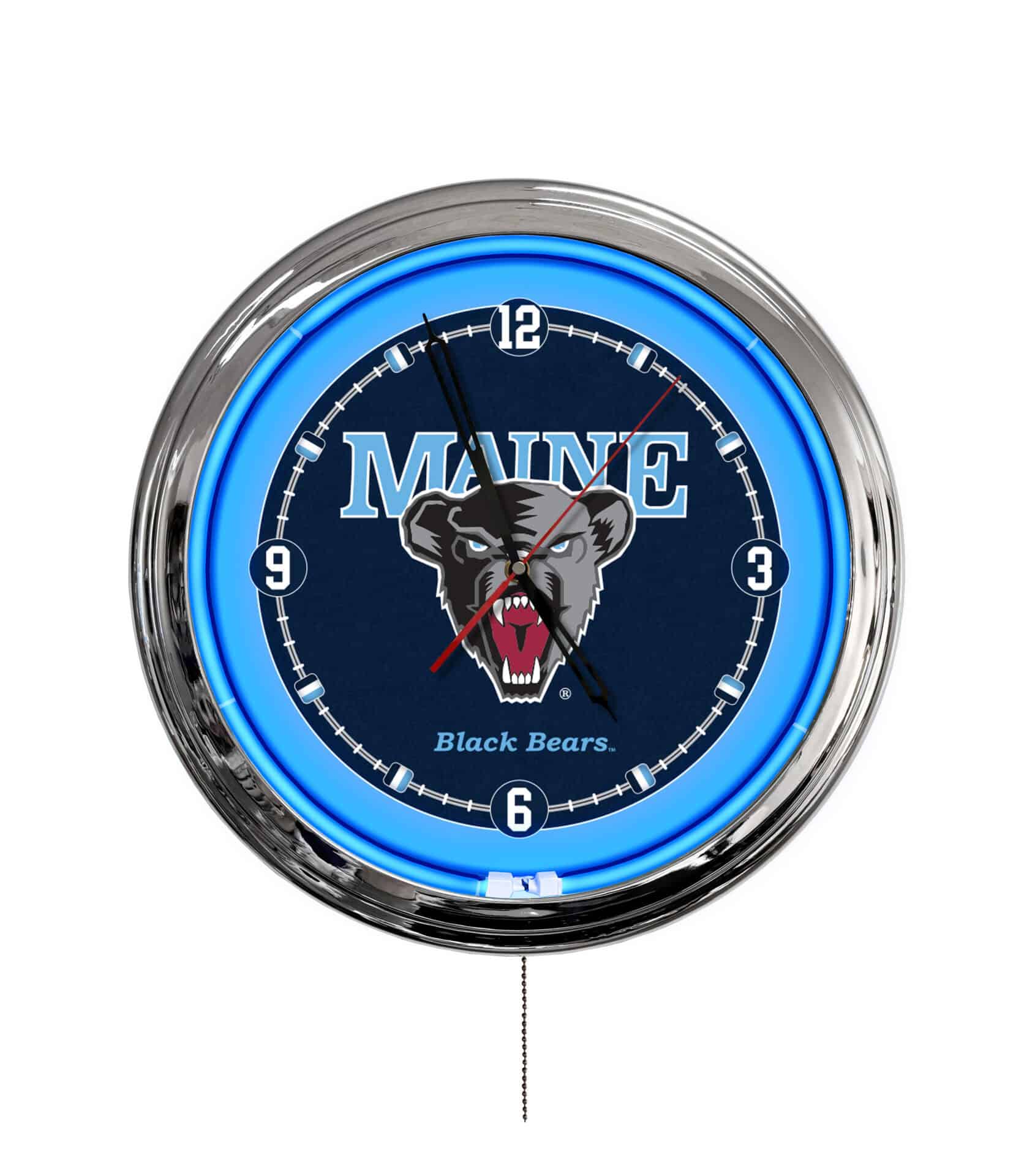 The University of Maine 16-Inch LED Wall Clock in Chrome offers a stylish and functional addition to any space. This innovative clock features a vibrant illuminated logo that shines in a variety of colors, perfect for creating an inviting atmosphere. With 20 static colors and 19 dynamic modes, users can easily customize the look to fit their mood or event. The sleek chrome casing enhances its aesthetic appeal, while practical features like a wireless remote control make it easy to adjust settings from anywhere in the room.