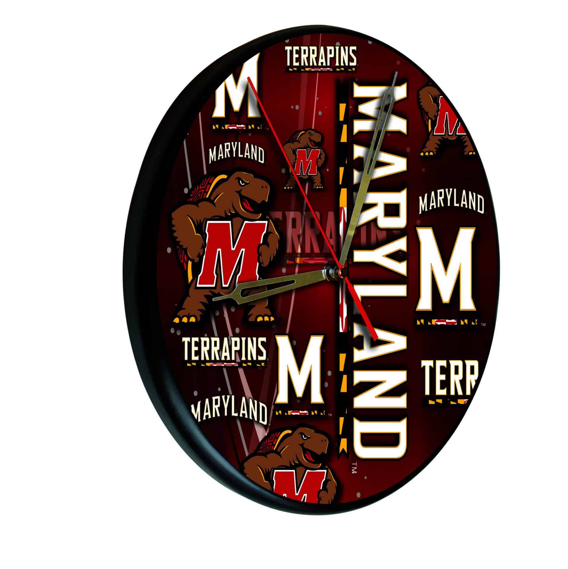 The University of Maryland 13-Inch Solid Wood Clock in Black is an ideal decor piece for any fan’s man cave, showcasing school pride with style. This clock combines functionality with aesthetic appeal, featuring first surface, digitally printed graphics that utilize UV inks to ensure vibrant colors that won’t fade over time. The clock’s accurate quartz movement is powered by a single AA battery (not included), guaranteeing precise timekeeping. Its recessed keyhole hanger allows for a flush mount against the wall, offering a sleek and polished look. Perfect as a gift for recent graduates or sports enthusiasts, this clock embodies both quality and pride.