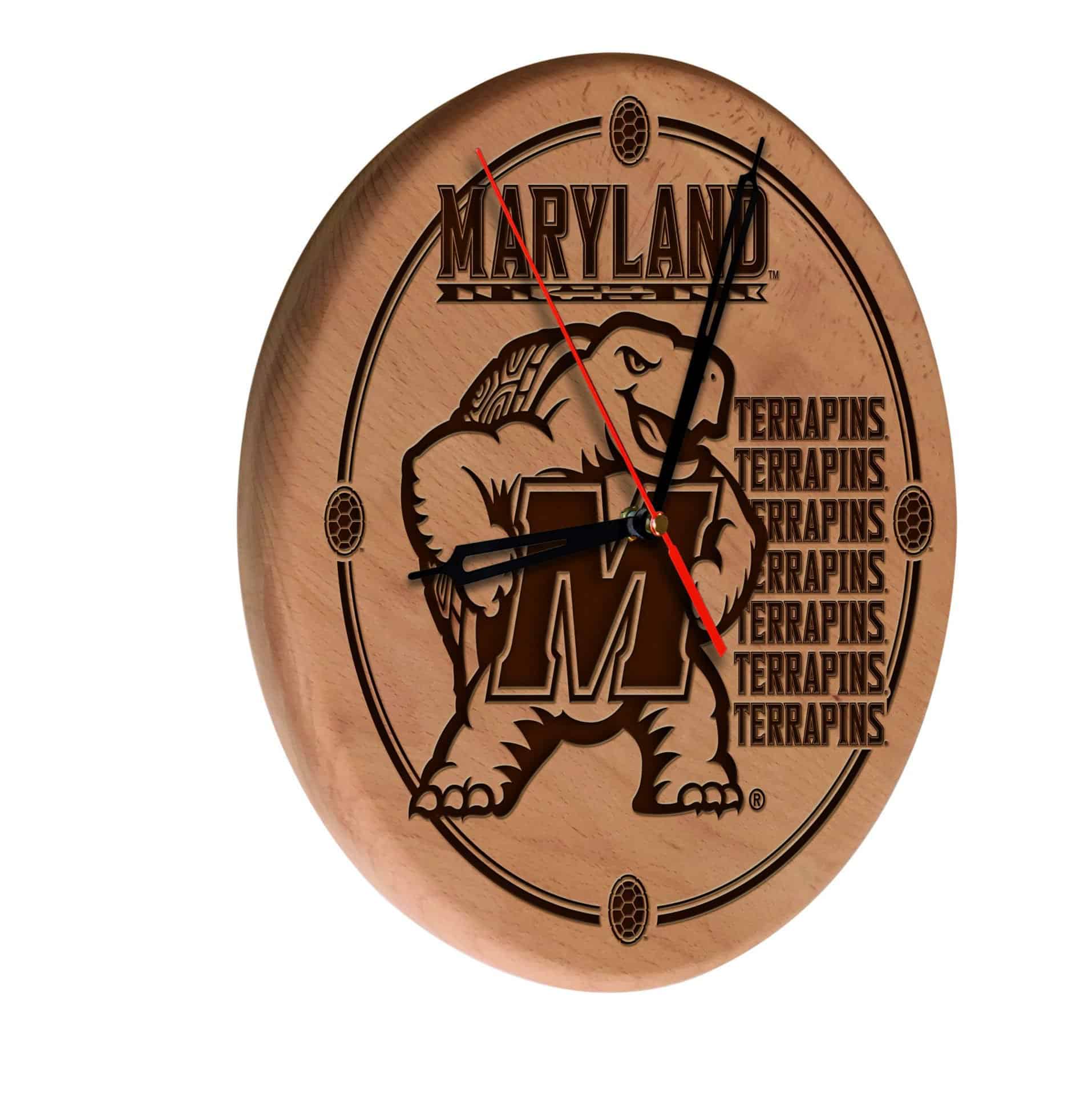 This 13-Inch Solid wood engraved clock is a perfect addition for anyone looking to showcase their school pride. Featuring laser engraved graphics, this officially licensed clock combines style and functionality. The accurate quartz movement ensures reliable timekeeping, while the recessed keyhole hanger allows for a clean, flat wall display. Ideal for gifts or personal use, this clock is a statement piece for any room.