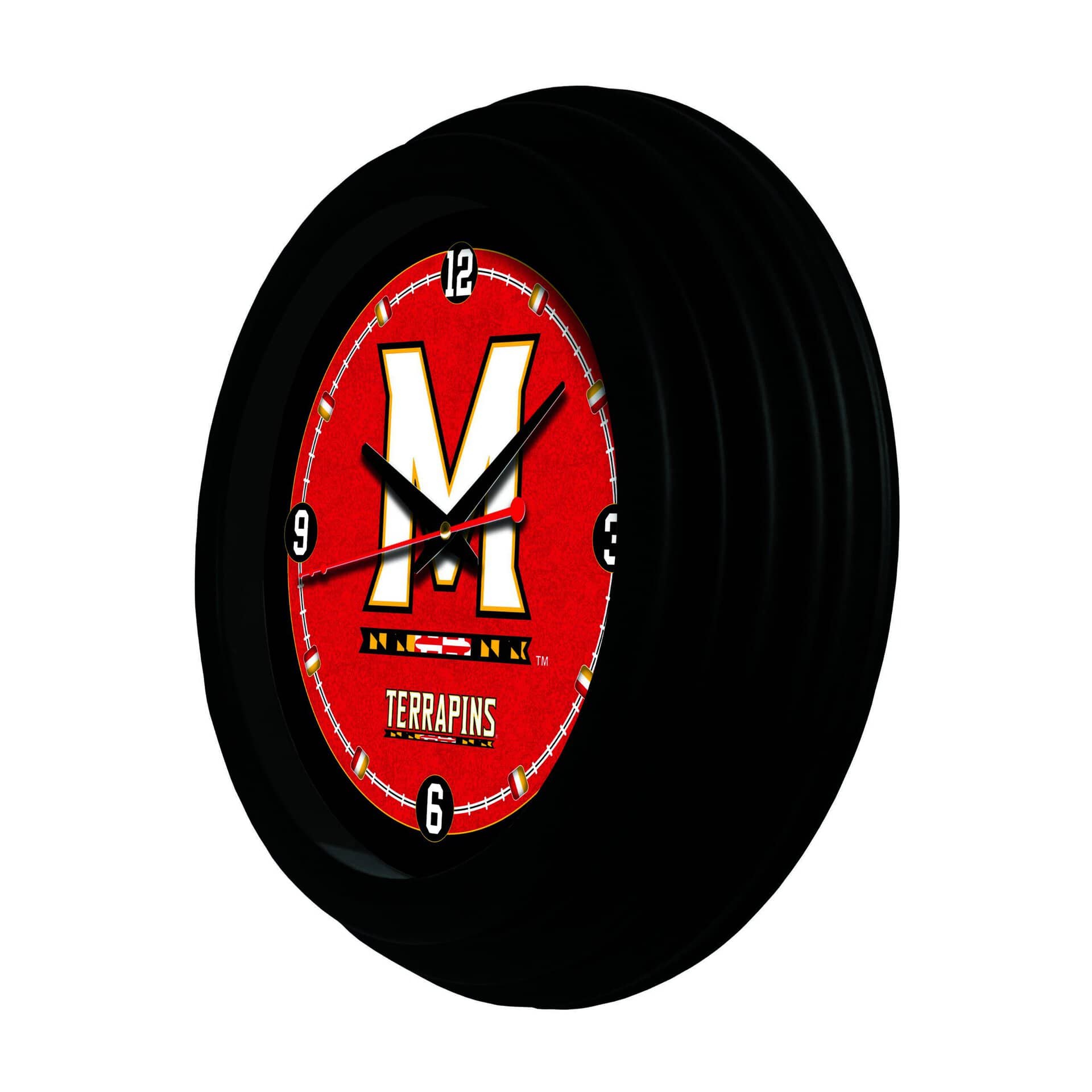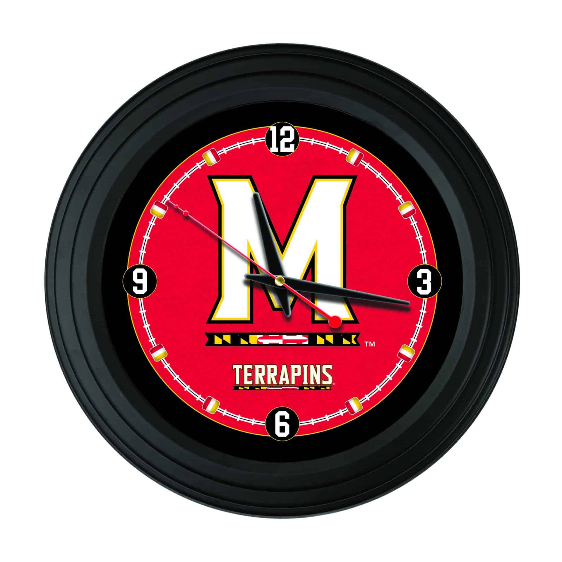 This University of Maryland 15-Inch Wall Clock in Black is the perfect addition to any space, allowing you to showcase your school pride while keeping track of time. Featuring vibrant, full-color digitally printed graphics protected under a glass lens, this clock combines functionality with style. Its accurate quartz movement operates on a single AA battery, ensuring precise timekeeping. The clock is designed to hang flat against the wall thanks to its recessed hanger, giving it a clean and polished look. Ideal as a gift for a recent graduate or a sports enthusiast, this clock is a great way to celebrate your connection to the University of Maryland.