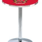 The table is easy to assemble and features a flush-mount chrome T-mold edging to prevent food particles from getting trapped. Its environmentally friendly construction includes a VOC-free, hot-melt adhesive for the tabletop attachment. Whether for entertaining guests or showcasing your loyalty to your favorite team, this pub table is a must-have centerpiece.