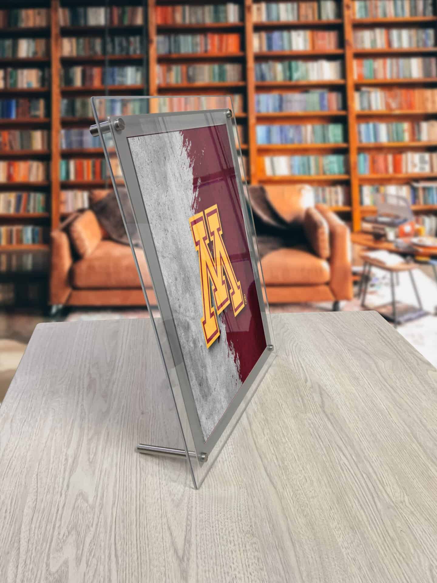 - Mounting Options: Includes hardware for wall mounting (1″ stand-offs) or desktop display (3 3/4″ foot).