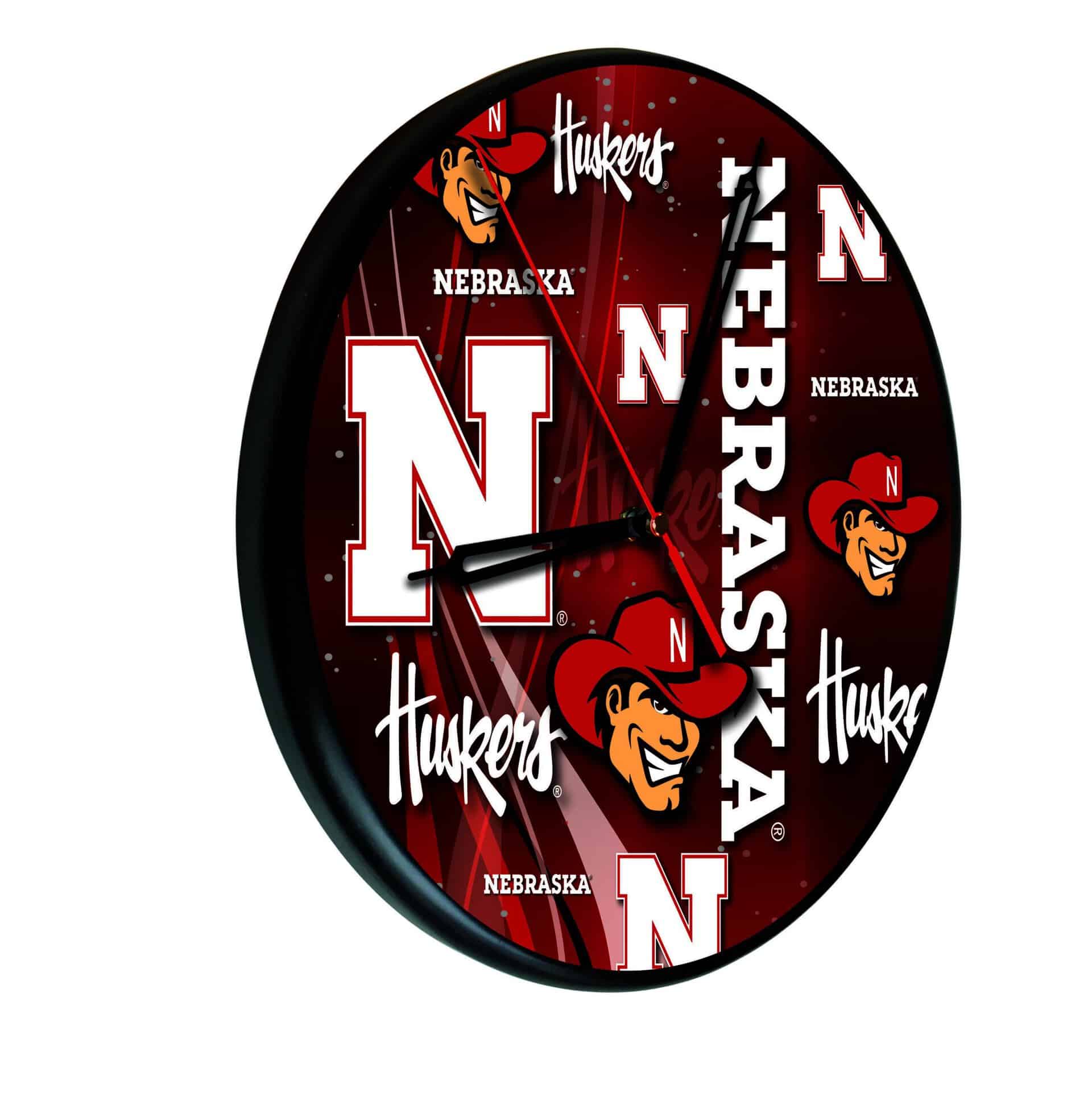 The University of Nebraska 13-Inch Solid Wood Clock in Black is an ideal addition to any man cave, showcasing your school pride while providing functionality. This officially licensed clock features first surface, digitally printed graphics with UV inks that resist fading over time. Its accurate quartz movement ensures precise timekeeping, powered by a single AA battery (not included). The recessed keyhole hanger allows for a sleek, flat wall display, making it a perfect gift for graduates, sports enthusiasts, or as a personal statement piece.