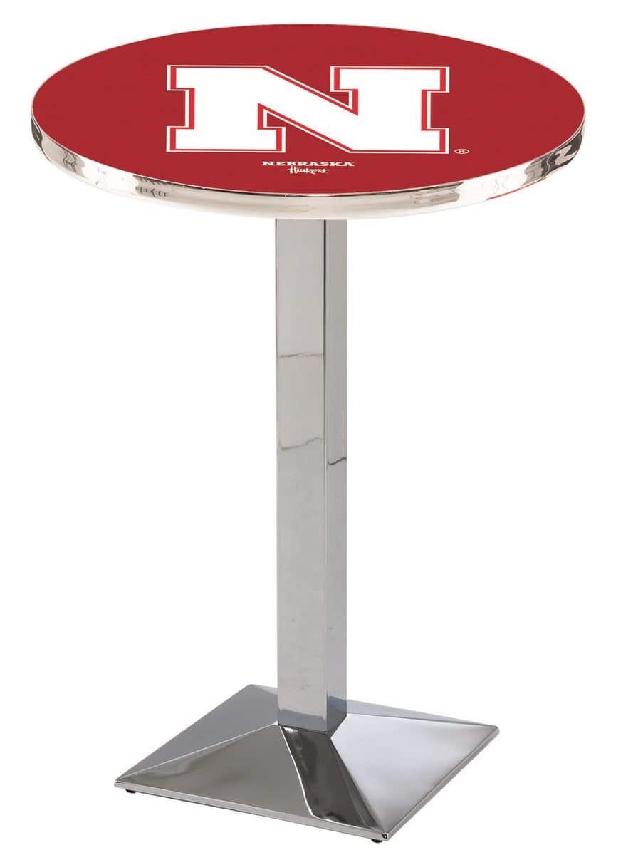 Elevate your bar, game room, or man cave with this stunning 36-inch pub table. Designed with functionality and style in mind, this table features a sleek chrome finish, a durable square base, and a scratch-resistant top with a vibrant full-color design. Its commercial-quality construction ensures long-lasting stability, making it the perfect centerpiece for your space. Easy to assemble and maintain, this table is equipped with adjustable feet to accommodate any floor surface, ensuring a steady and level setup wherever you place it.