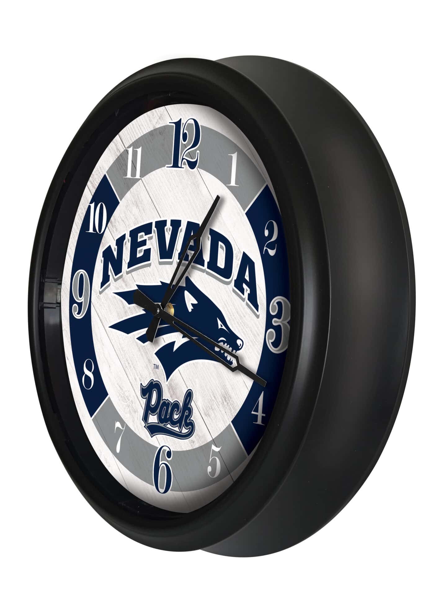 The University of Nevada 14-Inch Indoor/Outdoor LED Wall Clock in Black is the ideal addition to any man cave, showcasing your school pride while providing functionality. Designed for both indoor and outdoor use, this clock features a weather-resistant construction that stands up to the elements. Its vibrant artwork is digitally printed with UV inks, ensuring that colors remain vivid and fade-free over time. With photo eye controlled LED lights that illuminate the clock face automatically in low light conditions, you’ll always have a clear view of the time, whether it’s day or night. This clock is not only a practical timepiece but also a statement piece for sports enthusiasts and recent graduates alike.