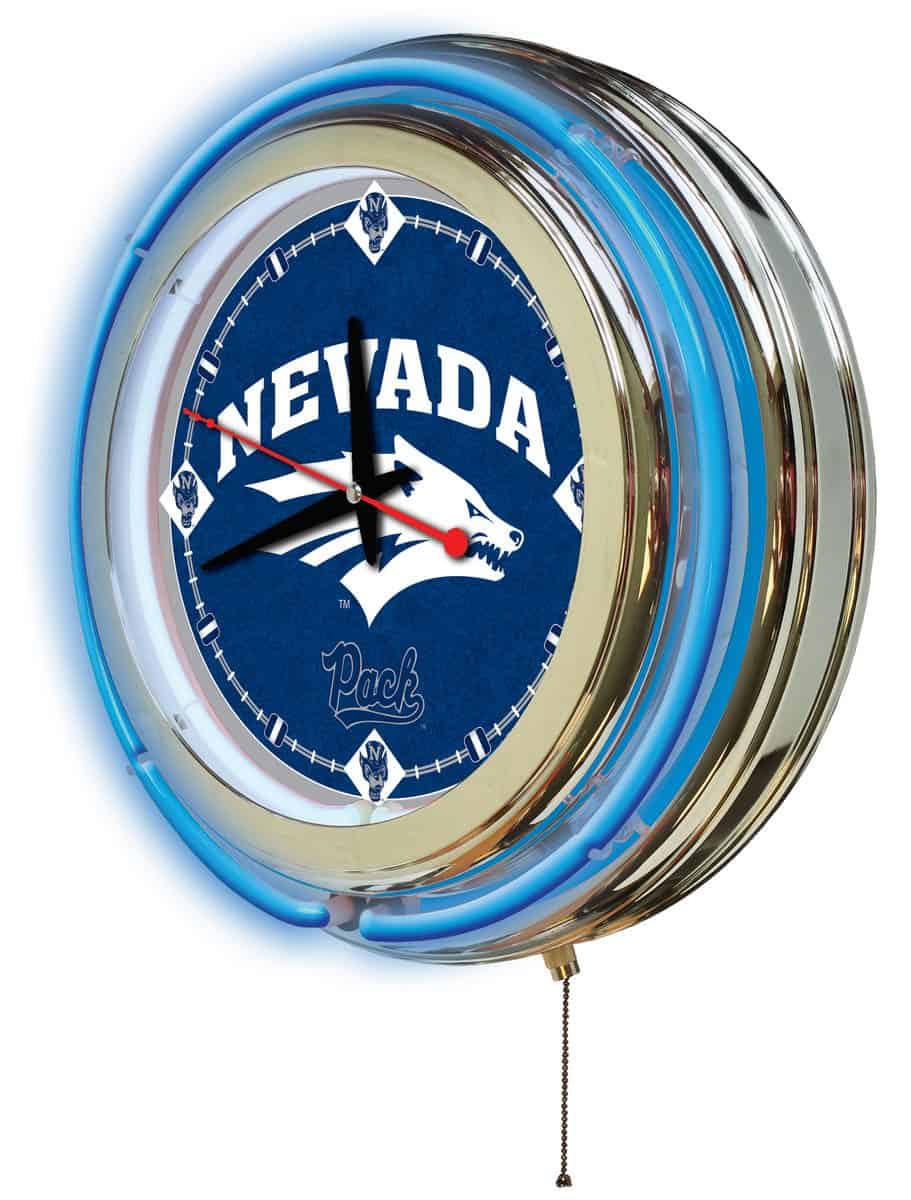 The University of Nevada 15-Inch Neon Logo Clock in Chrome is the ultimate addition to your man cave, showcasing your team spirit with style. This eye-catching clock features a chrome casing and a vibrant neon outer ring that highlights the custom printed clock face, illuminated by a brilliant white inner neon ring. The pull chain allows for easy on/off operation, while its accurate quartz movement ensures you’re always on time. Perfect as a gift for sports enthusiasts or as a personal treat, this clock combines functionality with team pride.