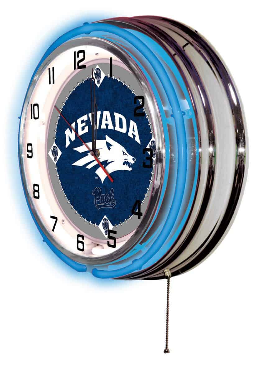 The University of Nevada 19-Inch Neon Logo Clock in Chrome is the perfect addition to any fan’s collection, showcasing your school pride with vibrant neon colors and a sleek design. This clock features a stunning chrome casing and a neon outer ring that complements the custom printed clock face, illuminated by a bright white inner neon ring. With easy operation via a pull chain and reliable quartz movement, this clock not only serves as a stylish decor piece but also ensures accurate timekeeping. Ideal for gifting or personal use, it brings a touch of school spirit to any space.
